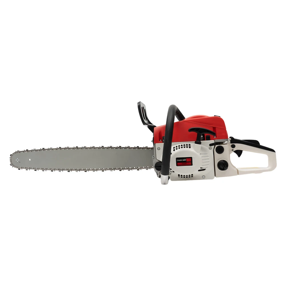NEW 52cc 2 Stroke Gas Powered Chainsaw 22 Inch Handhold Wood Cutter Chain Saw DE Gas-powered Chainsaw, 52CC Gasoline Chainsaw, Chainsaw Cutting Wood Gas Sawing, Chain Saw Set Description With high-quality materials, superior performance, and a powerful engine, this gasoline chainsaw is an efficient professional cutting tool that saves you time and labor. The ergonomic handle, dual on/off switch, brake flap, and pull-type ignition make it comfortable and safe to use. So, it will be your ideal working assistant. Key Features Build to Last: It is mainly made of high-quality propylene, which is insulating, strong, solid, wear-resistant , and not easy to deform, ensuring a long service life. Excellent Performance : The 2-stoke engine with 52cc displacement, 7500rpm high speed, 2.0KW strong power, 22" guide chain, and a deep cylinder can achieve fast cutting, thus providing excellent performance. Cost Saving: The combination of this quality carburetor and automatic lubricating oil system enables the product to provide a stable and economical supply of chains and bars, quickly and easily adjust chain tension, and reduce friction and oil consumption. High Safety: The double protection switches that must be pressed at the same time to work can prevent the machine from accidentally starting. The heat-sink holes on the machine also ensure good heat dissipation. Moreover, the widened brake baffle that makes emergency braking can avoid sawdust splashing, and the pressure-reducing valve improves safety. Convenient and Comfortable: With a hand-pull spring-loaded starter handle, premium spark plug, safety switch, and throttle switch, it's convenient to use. Its cordless design and non-slip shock-absorbing ergonomic handle allow you to operate more easily and freely. Easy to Install: The simple structure, complete accessories, and English manual allow you to install this product in minutes, saving you time and labor. Easy to Clean: The practical filter, smooth surface, and detachable design allow you to easily clean the dust with water and a soft towel. Ideal Gift: With its great features and practicality, you can give it to your carpentry friends for a holiday or a housewarming gift! Customer Service: We aim to provide quality products and services. If you have problems, please feel free to contact us. We will reply and solve the problem for you as soon as possible. Details Tool Bag: It can help you organize your accessories in an orderly manner, making it easy for you to carry around and effectively preventing accessory loss . Fuel Oil Mixing Bottle : The 18.6 oz translucent bottle with scale allows for large capacity, a convenient and precise mixture of fuels, and long-term use without frequent filling. Double Nuts and Piston Rings: The guide plate is fixed with double bolts to ensure the stability of the product and make the chain not easy to loosen. The rings make the product sealing performance better, which can increase the machine's power. Chain Bar Cover: It allows for convenient storage and better protection of the guide bar when not in use. Application It is suitable for forest harvesting, cutting wood, pruning branches, gardening, home woodworking, bamboo sawing, light felling, DIY crafts, ranches, farms, and so on to meet different needs. How to Assemble the Chainsaw Install the jam teeth in the right direction. Install the guide bar. Install the chain. Cover the side cover. Adjust the chain tightness. Tighten the screw. How to Start the Chainsaw 1. Push the Brake. 2. Move the “On/Off” switch to the “On” position. 3. Pull the choke knob fully out to position. 4. Pull the start handle(max 6 times). 5. Push the choke knob back fully. 6. Pull the starter until the engine starts. Specification Color: Red and White Model: 5200 Style: Modern Assembly Required: Yes Material: Propylene Engine Type: Single Cylinder, Air-cooled, 2-Stroke Ignition System: Self-reset Pull Start Fuel Oil Mixing Bottle Capacity: 550ml/18.6Oz Power: 2.0kw Speed: 7500rpm Displacement: 52cc Oil Mixture: 25:1( 90# Gasoline : Oil with 2-cycle Engine Oil) Chain Length: 56cm/22inch Max. Cutting Diameter: 56cm/22inch Engine Size: 40*27cm/ 15.74*10.62inch Package Size: 56*45*28cm/ 22.05*17.72*11.02inch Gross Weight: 8kg/17.64lbs Package Included 1* Gasoline Chainsaw 1* Chain Bar Cover 1* Fuel Oil Mixing Bottle 1* Tool Bag 1* English Manual 1* Funnel Other Accessories for Assembly Notes Please use gasoline 90# with special 2-cycle engine oil(not included) and never use pure gasoline . Gasoline and oil mixture ratio: 25:1. Please read the manual and product labeling completely before installation and use, and pay particular attention to the safety instructions included. Please take personal protection measures during operation and keep this product away from children on a daily basis. Please allow the slight color difference caused by the shooting light and 1-3cm error due to manual measurement, and make sure you do not mind before ordering. Payment Delivery details Terms of sales About us Contact us Payment We accept ebay payment 。 Fees such as import duties, taxes are not included in the item price or shipping costs. These charges are the buyer's responsibility. Delivery details Shipping: 2-9 working days to: USA Terms of sales We maintain high standards of excellence and strive for hundred percent customer satisfaction. Feedback is very important to us. We hope that you contact us immediately before you give neutral or negative feedback, so that we can address your concerns. It is impossible to address issues if we do not know about them! About us Your satis faction is our ultimate goal. We work hard to earn your trust and future business. Our certified technicians have tested each item before shipping. The unit comes with 1 year limited warranty on all manufacturing defects. a) If you receive a defective item, you may return it or ask for a discount. Please contact us within 14 days after you receive the package. b) Wh