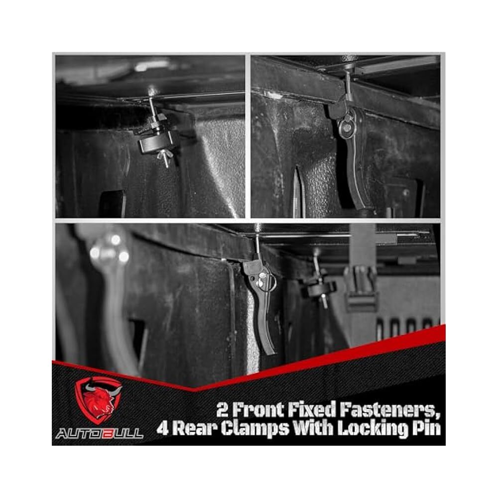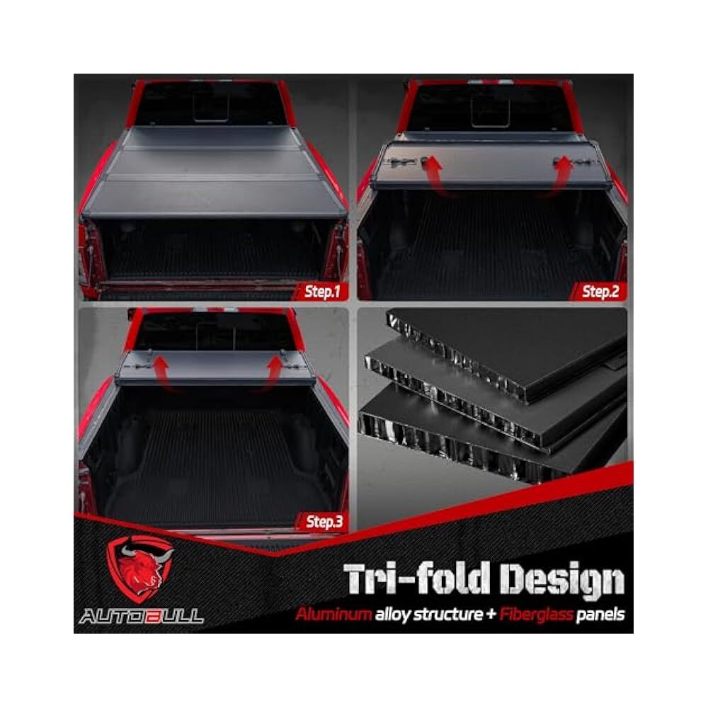 Lock Type: Locking Pin Material: Fiberglass, Alloy Steel Features: Durable, Low-Profile, Theft Deterrent, Tri-Fold Package Dimensions: 64.25 x 24.3 x 5.25 inches Type: Tonneau Cover Exterior Finish: Aluminum Bed Length: 5.2ft (61.7) Automotive Fit Type: Vehicle Specific Fit Placement on Vehicle: Bed Manufacturer: AutoBull Item model number: Tri-fold gtin13: Does not apply Brand: AutoBull UPC: Does not apply Style: Hard Fodling Model: Hard Top