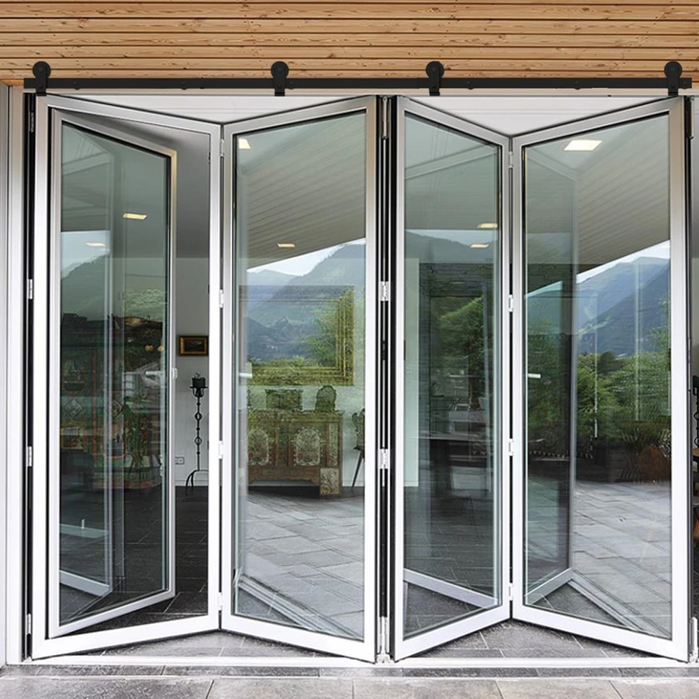 52in Bifold Sliding Barn Door Hardware Folding Roller Flat Track Kit For 4 Door