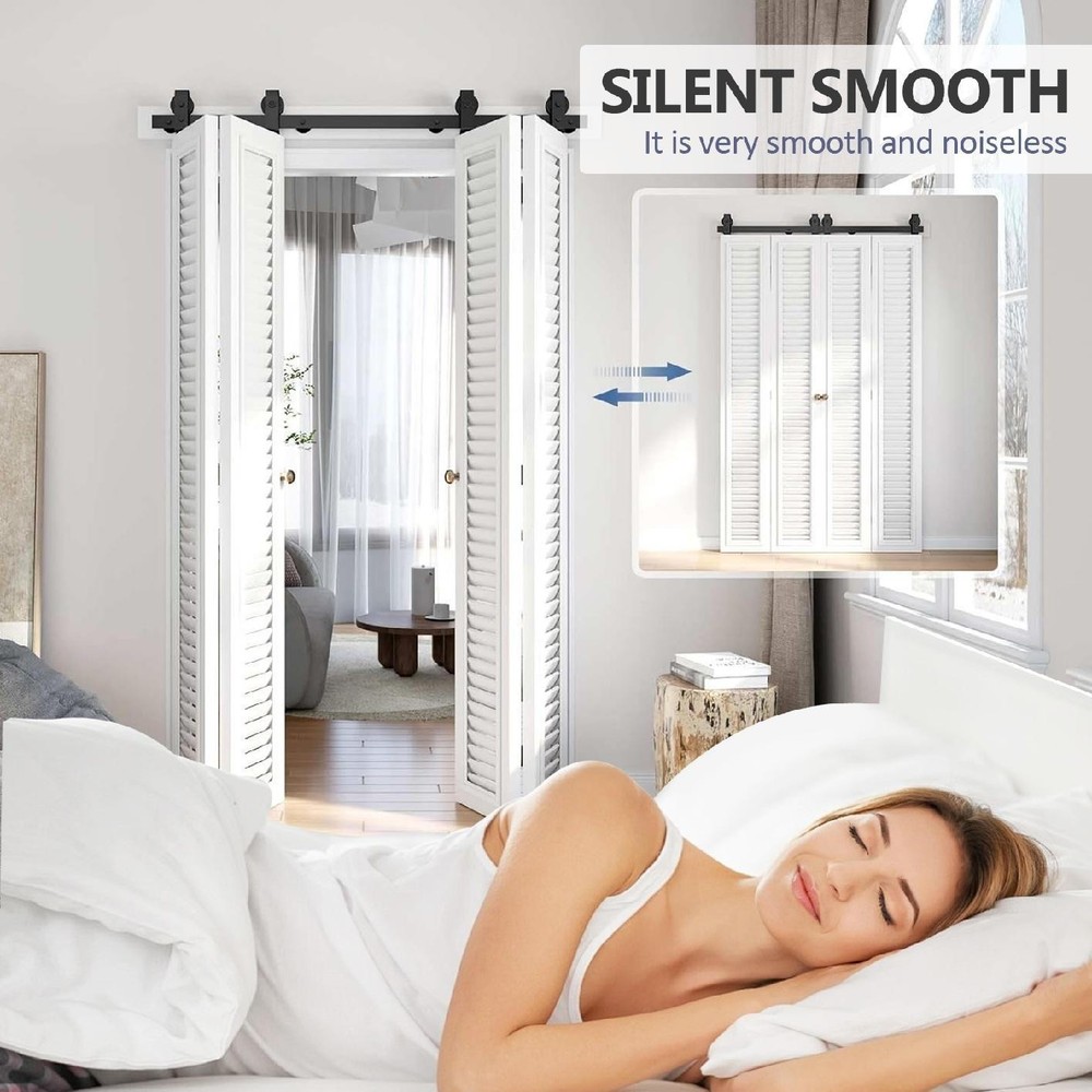 52in Bifold Sliding Door Track,Sliding barn door hardware kit,Black,Brand New--