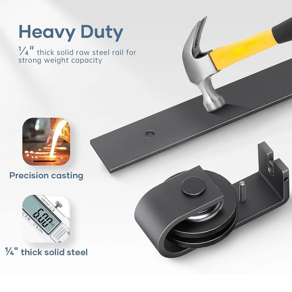 Store category Sign Up Now ! You may also like Product Description Bullet Points: Durable and Reliable: Designed with wear-resistant, high-quality carbon steel and equipped with rollers using a combination of reliable bearings and nylon wheels, our sliding barn door hardware kit provides a durable, anti-rust movement on 6mm thick tracks. Time-Saving and Space-Saving: Install our barn door hardware kit to save space and time by easily transforming your folding doors; the perfect solution for any household seeking a stylish and efficient upgrade. Helpful and Useful: Our sliding barn door hardware kit makes your life more convenient with easy access. Suitable for door thickness of 1-3/8 to 1-3/4 (35mm to 45mm), the full set is perfect for transforming spaces and bringing style and functionality to your home. Simple Installation: Our sliding door hardware kit ensures an intuitive installation process, complete with a detailed manual featuring both illustrations and text for clarity. Widely Suitable: With its versatility and style, this sliding barn door hardware kit is a perfect addition to your home, restaurant, or study area. Widely applicable and equally dynamic, it can improve any living space to a whole new level of adaptability. Our sliding barn door hardware kit is strong and saves space in your house. It brings you convenience in daily life and is widely used in a variety of living situations. Easy to install and operate, this sliding door hardware kit is a must-have for any home or barn. Specifications: Colour: Black Material: carbon steel Product Size: Track size: about 52 inches (132CM) Track splicing method: 4 pieces Scope of application: Door panel thickness of about 0.5-50MM Packing List: 4x FT track 4x roller 4x roller swivel stand 2x roller holder 5x pipe clamps 6x hinge 2x ground guide fixings 2x sealing strip 1x screw pack 1x Manual Notes: 1. Due to the lighting effects and photographing angles, there is a color difference in the product, please understand. 2. Due to manual measurement, there is a tolerance in the product size. Payment Delivery details Terms of sales About us Feedback & DSRs Payment Before you palce an order, please kindly make sure that you have a paypal account. We accept PAYPAL payment only. Payment should be completed within 2 days after auction closed, or unpaid dispute will be filed for an closing auction. An unpaid case will be filled after 4 days. Delivery details We ship to your eBay address. Each package will be shipped to US by UPS Regular Parcel with tracking number. Please check your shipping address carefully before checkout, it can't be changed if order completed. All items will be shipped within 1-2 business day upon receipt of payment.Orders placed on weekend will be shipped within 3 days. If you do not receive your item in 7-10 business days.please contact us immediately for further assistance. We will be responsible for any damages or losses incurred in the shipping process. About us We maintain high standards of excellence FIVE STAR and strive for 100% customer satisfaction! Positive Feedback is very important to us. We hope that you contact us immediately Before you give us neutral or negative feedback, so that we can satisfactorily address your concerns. We promise to offer the lowest price and high quality produce. Our working time: From Monday to Friday(9:30 am to 18:00pm), we don't working on holidays ,hope you can understand and know that , thank you. Please always talk to us via ebay Message. We appreciate your business and look forward to growing our e-Bay sales with satisfied customers. Feedback Contact us If you have any questions, please feel free to contact with us by ebay Message during our business hours ( 9:30a.m. to 5:30 p.m.), or email us through eBay, we will try our best to help you to resolve it. For any presale or after-sale questions,please do feel free to email us! Due to the time difference, each email will be replied within 1 working day,and weekend will be delayed a bit. Feedback