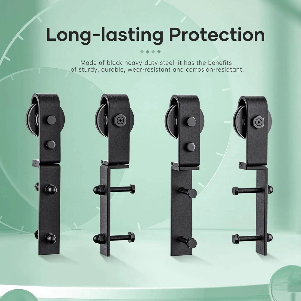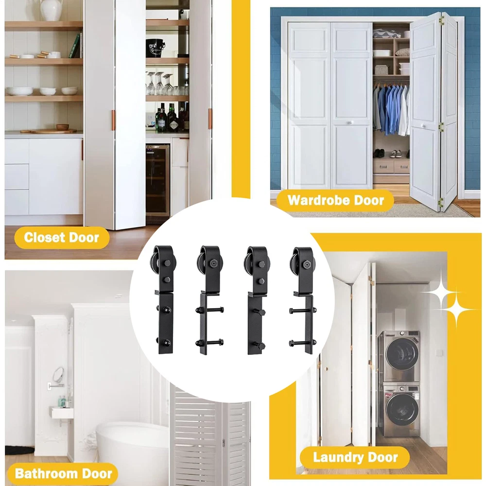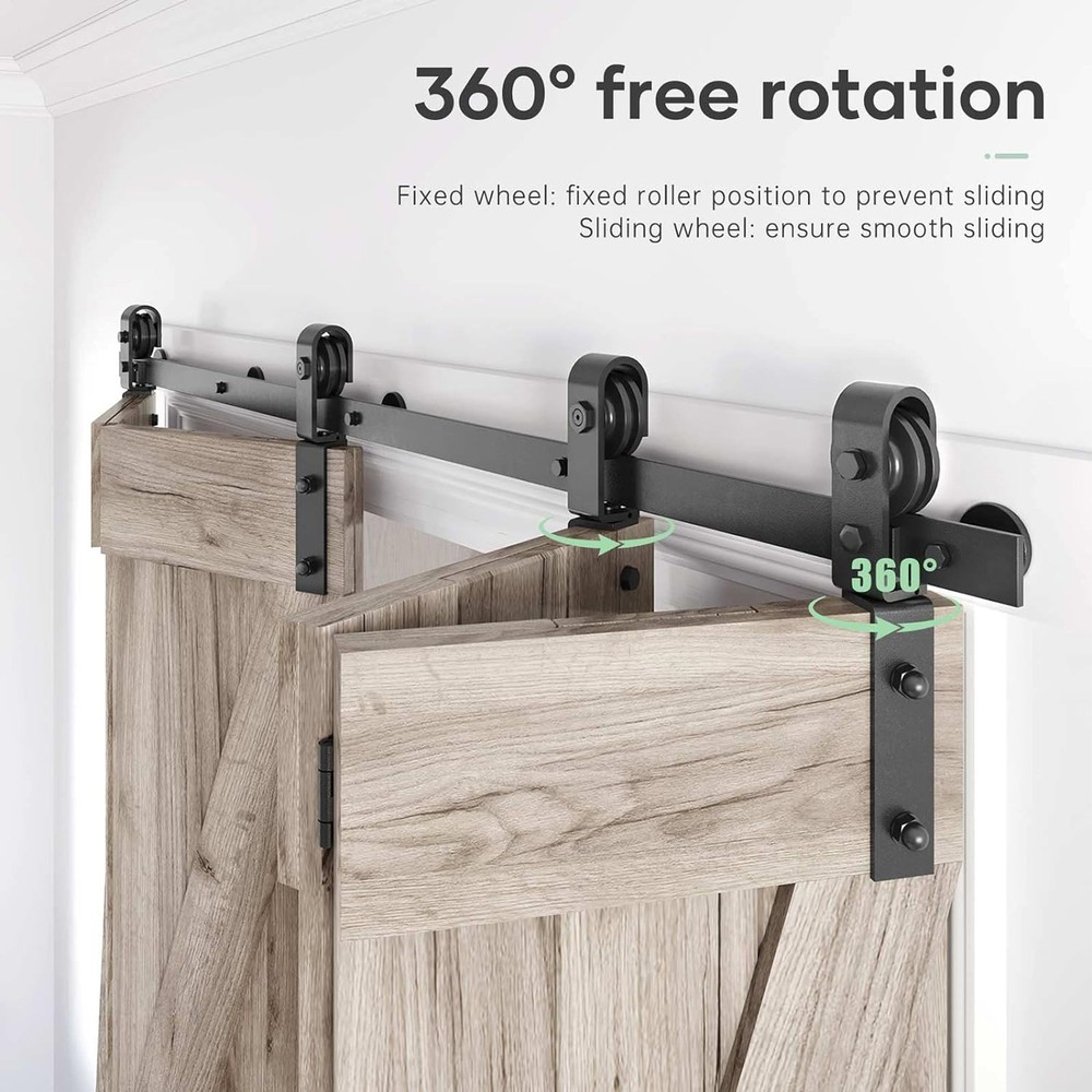 This sliding barn door hardware kit is a game-changer! The carbon steel construction feels super sturdy, and the rollers glide smoothly for whisper-quiet operation. Installation was a breeze, and now my folding doors save so much space while looking stylish. The anti-rust coating gives me peace of mind—no more worrying about wear and tear. Such a sleek upgrade for any room!