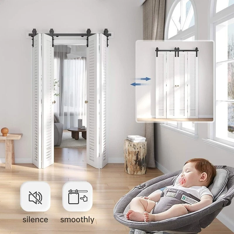 Store category Sign Up Now ! You may also like Product Description Bullet Points: Strong Durability: Crafted from high-quality carbon steel, our sliding barn door hardware kit ensures a smooth, wear-resistant journey on 6mm thick tracks; its durable rollers, combining reliable bearings with nylon wheels, offer a robust, anti-rust movement. Effortless and Time-saving: Our barn door hardware kit is perfect for hassle-free installation and transforms your folding doors with ease. The perfect space-saving solution for any household to enhance their home's efficiency. Practical and Helpful: Enhance your home's functionality with our sliding barn door hardware kit, designed for doors 1-3/8 to 1-3/4 thick, ensuring smooth operation and daily convenience. Easy Installation: Our sliding barn door hardware kit allows for an easy installation process, thanks to instructions that offer clear explanations and visual aids including diagrams and pictures. Widely Suitable: With its versatility and style, this sliding barn door hardware kit is a perfect addition to your home, restaurant, or study area. Widely applicable and equally dynamic, it can improve any living space to a whole new level of adaptability. Upgrade your home with our strong sliding barn door hardware kit! Save space and bring convenience to your daily life. Widely used in a variety of living situations, this hardware will give your home a modern and stylish touch. Specifications: Colour: Black Material: carbon steel Product Size: Track size: about 52 inches (132CM) Track splicing method: 4 pieces Scope of application: Door panel thickness of about 0.5-50MM Packing List: 4x FT track 4x roller 4x roller swivel stand 2x roller holder 5x pipe clamps 6x hinge 2x ground guide fixings 2x sealing strip 1x screw pack 1x Manual Notes: 1. Due to the lighting effects and photographing angles, there is a color difference in the product, please understand. 2. Due to manual measurement, there is a tolerance in the product size. Payment Delivery details Terms of sales About us Feedback & DSRs Payment Before you palce an order, please kindly make sure that you have a paypal account. We accept PAYPAL payment only. Payment should be completed within 2 days after auction closed, or unpaid dispute will be filed for an closing auction. An unpaid case will be filled after 4 days. Delivery details We ship to your eBay address. Each package will be shipped to US by UPS Regular Parcel with tracking number. Please check your shipping address carefully before checkout, it can't be changed if order completed. All items will be shipped within 1-2 business day upon receipt of payment.Orders placed on weekend will be shipped within 3 days. If you do not receive your item in 7-10 business days.please contact us immediately for further assistance. We will be responsible for any damages or losses incurred in the shipping process. About us We maintain high standards of excellence FIVE STAR and strive for 100% customer satisfaction! Positive Feedback is very important to us. We hope that you contact us immediately Before you give us neutral or negative feedback, so that we can satisfactorily address your concerns. We promise to offer the lowest price and high quality produce. Our working time: From Monday to Friday(9:30 am to 18:00pm), we don't working on holidays ,hope you can understand and know that , thank you. Please always talk to us via ebay Message. We appreciate your business and look forward to growing our e-Bay sales with satisfied customers. Feedback Contact us If you have any questions, please feel free to contact with us by ebay Message during our business hours ( 9:30a.m. to 5:30 p.m.), or email us through eBay, we will try our best to help you to resolve it. For any presale or after-sale questions,please do feel free to email us! Due to the time difference, each email will be replied within 1 working day,and weekend will be delayed a bit. Feedback