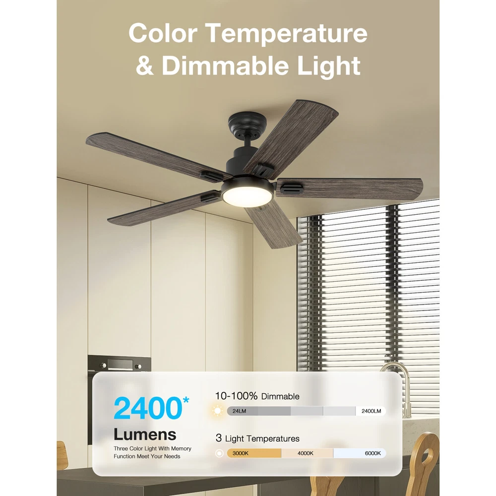 Store Categories Store Categories Ceiling Fans Other 52inch Ceiling Fan With Light and Remote Control Product Description This is a 52 inch 5 blades ceiling fan. First of all, there are different colors for you to choose from, the fan blades have different colors on the front and back, you can match different styles of scenes according to the color of the fan blades to provide more choices; more noteworthy is that the fan blades are made of solid wood, which brings you a refreshing and comfortable feeling! Secondly, the ceiling fan is illuminated by a 24W LED light; there are warm light, natural light and cold light for you to choose. And both the ceiling fan and the light can be independently controlled, as far as possible to meet the needs of different scenes. It is worth mentioning that the ceiling fan uses a DC motor, which saves electricity compared to normal motors. There are 6 wind speeds to choose from, and the sound volume is less than 35 decibels when the motor is working in an energy efficient way. And the motor provides a reversing function, which can bring you a refreshing breeze in summer, and accelerate the efficiency of warm and fresh air circulation in the house in winter; maximizing your experience. In addition, more detailed product parameters can be found on the property page. Features Reversible motor allows you to switch the direction of rotation of the fan, saving energy and meeting the needs of different seasons. LED light is dimmable. Change the brightness by remote. Power of light is 24W.Color temperature is 3000K/4000k/6000k. All functions can be controlled by the remote, 6 Speeds are available, and supports a timer function. The remote control can be used as a wall switch with the wall bracket that comes with the fan. Different colors of double-sided fan blades to meet your needs for more use of space. This ceiling fan with remote is height adjustable via the 5", 8" down rods to ensure proper distance from the ceiling and optimize air movement. Payment Policy Shipping Policy Returns Policy Contact Us Payment Policy We are not responsible for tax. We accept paypal only. If you don't have paypal, please register a paypal account. We accept credit card,debit card,bankpayment online visa paypal. Please pa y within 7 days after purchase. Shipping Policy (1)To USA, When you order over $5, we will ship by FedEx Ground Economy . usually it will take about 5-10 days arrive. when your order below $10, we ship by economic shipping, usually takes 5-15 days arrive. (2)To other countries outside USA, we offer economic shipping, usually take 12-35 days arrive. (3)Items shipped from China are generally dispatched within 5 days; arriving within 12-35 days. If you don't receive your order within 30 days after your payment, please send us ebay message. we will help you. Returns Policy You can contact us at any time if you have any quality problem or you need help after receiving the product, we will try our best to solve it for you.We offer 30 days return without reason. Contact Us If any problem and any requests about your order, please contact us by ebay message before you leave us any negative or neutral feedback, we will try our best to help you solve any of your questions. Thank you so much. Copyright © 2023 Dianxiaomi