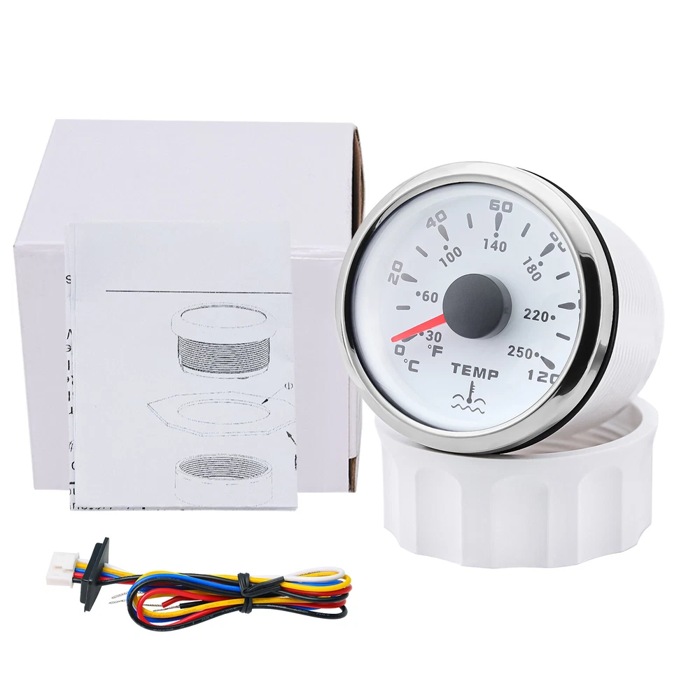 52mm 4 Gauge Set Fuel Level Oil Pressure Water Temp Volt For Car Truck Boat US 4 Gauge Set 52mm Fuel Water Temp Volt Oil Pressure For Car Truck Boat 7Colors LED Warmly tips: If any problem after buying, such as some when you install or the parcel received or un-received, please do not open a case and do not hesitate to contact us. We would do our best to give you the best solution Feature: High-brightness LED backlight. 316 stainless steel for long-term use even in acid-base, humid environment. IP67 waterproof and dust-proof grade. With curved glass( with anti-fog function). Suitable for all kinds of vehicle modification. Using stepper motor drive pointer, accurate display of the engine speed, and with the LCD display clear display mileage. Gauges have many kinds backlight color (red,yellow,orange,green,blue,purple,white),customers can adjust any color that you like Fuel Level Gauge Sizes: 52 mm (2-1/16") Measuring Range: Empty - Full Resistance: 240 (E) - 33 (F) ohms NOTES: 240-33ohms fuel level sensor only fit for 240-33ohms fuel gauge Backlight: 7 Colors Volt Gauge Sizes: 52 mm (2-1/16") Measuring Range: 8 - 16 (V) Backlight: 7 Colors Water Temperature Gauge Install diameter: Φ52mm Indication range: 0~120℃/30-250℉ Input signal: 287.4~22.4 ohms Storage temperature: -40~+85℃ Backlight: 7 Colors Oil Pressure Gauge Install diameter:Φ52mm or 2-1/16" Indication range:0~10bar / 0-150 PSI Input signal: 10-184 ohms Operating temperature:-30~+75℃ Storage temperature:-40~+85℃ Backlight: 7 Colors Package Includes: 1X 52MM Fuel Level Gauge 1X 52MM Voltmeter 1X 52MM Water temp gauge 1X 52MM Oil pressure gauge 4X Installation Instruction 4X Cable