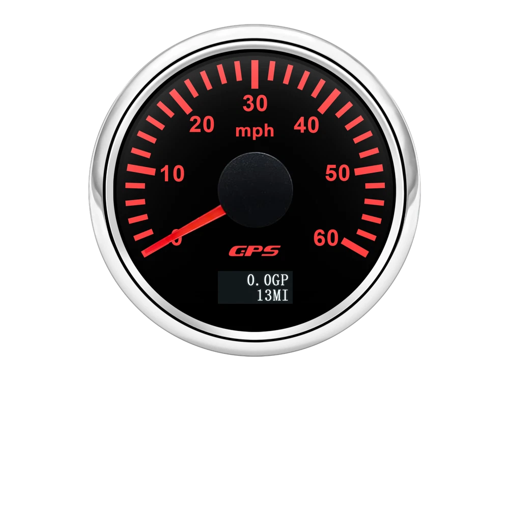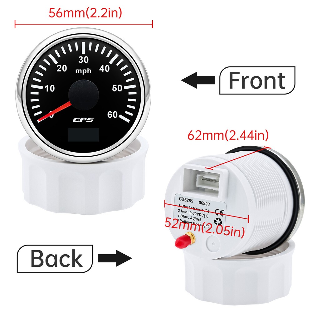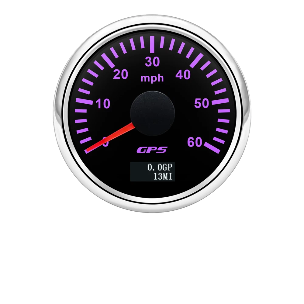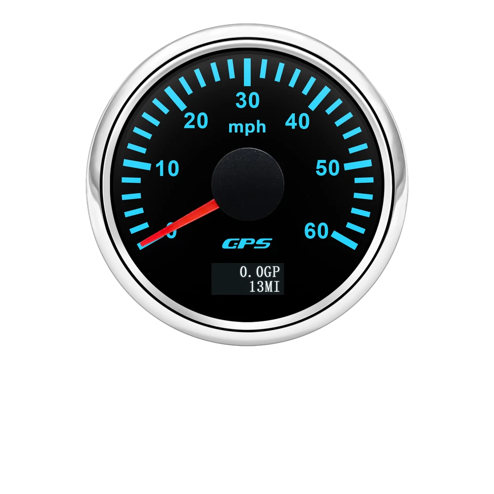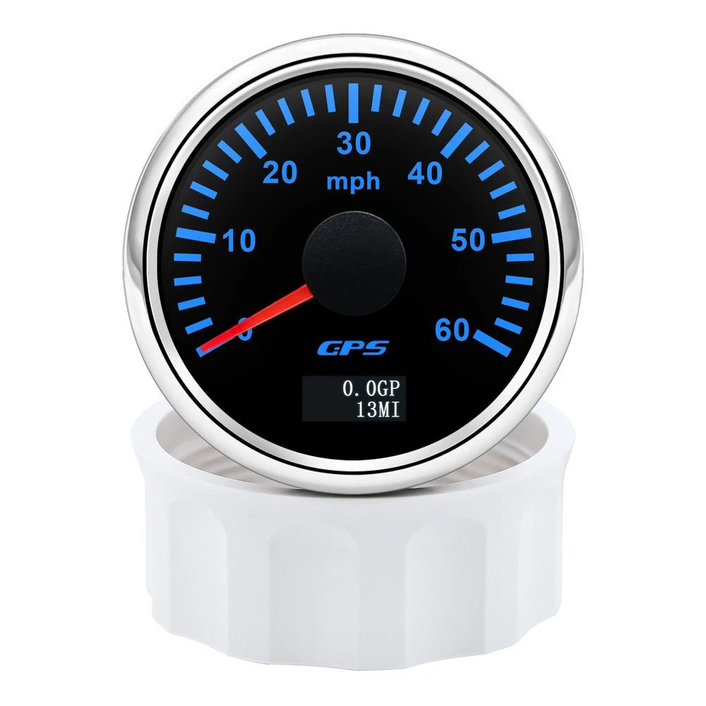 2'' 52mm Black GPS Speedometer 0-60MPH Gauge 7 Color LED For Boat Car Motorcycle 52mm GPS Speedometer Gauge 0-60 MPH Speed Odometer Stainless Waterproof for Car Boat Truck Specifications: Name: GPS Speedometer Odometer Material: PVC+Stainless steel+Glass Panel Color:Black Backlight Color: 7Colors LED Fixing Dimension: 52mm(2") Working Voltage:9~32VDC Working Current: ≤100mA Operating Temperature: -30°~75° Storage Temperature:-40°~85° Levels Of Protection: IP67 Indicating Range: 0-60MPH Suitable for car truck boats off-roadvehicles boats Features: -Protection grade is IP67. -100% brand new and high quality -With polarity reverse protection function. -The durability is good, and the seismic performance is good. -Thesignal comes directly from the satellite signal receiver(GPS Speed Sensor) -The gauge has the advantages of high precision,quick location confirmation and short start up time. -With ultra-wide working voltage design(long-term operating voltage: 9~32V,Maximum up to:36V(≤ 1 min) Installation instructions: 1.Opening a hole in the panel (your cabin board and dashboard) with a diameter of 85mm,Insert meter into the hole,The panel corresponding to the instrument panel is marked with a convex table,and open a small notch in this location,To ensure that there is at least 85mm of the instrument panel at the back of the instrument. 2.After the instrument is mounted in the panel,Screw down with a fixed ring.Opening a hole in the panel (your cabin board and dashboard) with a diameter of 85mm,Insert meter into the hole,The panel corresponding to the instrument panel is marked with a convex table,and open a small notch in this location,To ensure that there is at least 85mm of the instrument panel at the back of the instrument. 3.Connect the wire,the instrument housing is directly connected to the 9~36V power supply. 4.Insert wire harness,Firmly locked in the table. Package List: 1 x GPS Speedometer 1 x Standard Cables 1 x GPS Receiver 1 x Installation Instruction