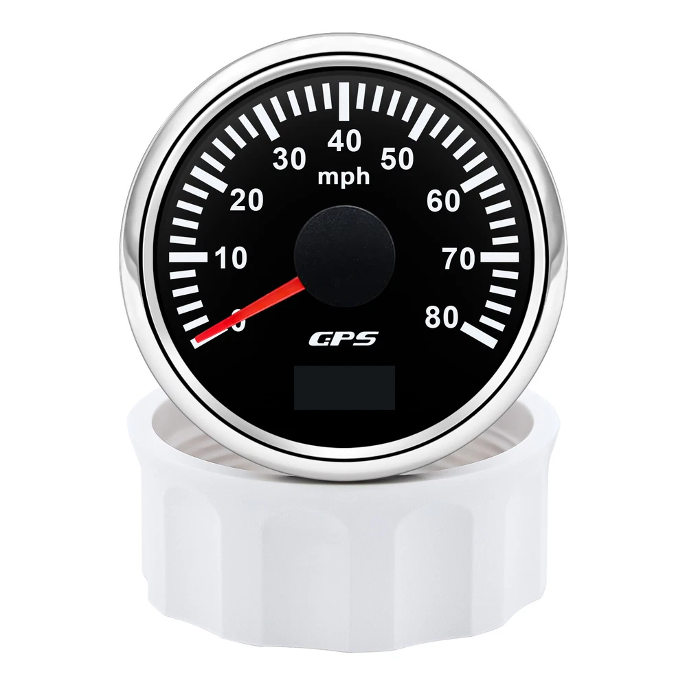 52mm Waterproof GPS Speedometer 0-80MPH Odometer Gauge for Marine Boat Car Truck 85mm GPS Speedometer Gauge 80 MPH Speed Stainless Waterproof for Car Boat Truck Specifications: Name: GPS Speedometer Odometer Material: PVC+Stainless steel+Glass Panel Color:Black Backlight Color: 7Colors LED Fixing Dimension: 85mm(3-3/8") Working Voltage:9~32VDC Working Current: ≤100mA Operating Temperature: -30°~75° Storage Temperature:-40°~85° Levels Of Protection: IP67 Indicating Range: 0-80MPH Suitable for car truck boats off-roadvehicles boats Features: -Protection grade is IP67. -100% brand new and high quality -With polarity reverse protection function. -The durability is good, and the seismic performance is good. -Thesignal comes directly from the satellite signal receiver(GPS Speed Sensor) -The gauge has the advantages of high precision,quick location confirmation and short start up time. -With ultra-wide working voltage design(long-term operating voltage: 9~32V,Maximum up to:36V(≤ 1 min) Installation instructions: 1.Opening a hole in the panel (your cabin board and dashboard) with a diameter of 85mm,Insert meter into the hole,The panel corresponding to the instrument panel is marked with a convex table,and open a small notch in this location,To ensure that there is at least 85mm of the instrument panel at the back of the instrument. 2.After the instrument is mounted in the panel,Screw down with a fixed ring.Opening a hole in the panel (your cabin board and dashboard) with a diameter of 85mm,Insert meter into the hole,The panel corresponding to the instrument panel is marked with a convex table,and open a small notch in this location,To ensure that there is at least 85mm of the instrument panel at the back of the instrument. 3.Connect the wire,the instrument housing is directly connected to the 9~36V power supply. 4.Insert wire harness,Firmly locked in the table. Package List: 1 x GPS Speedometer 1 x Standard Cables 1 x GPS Receiver 1 x Installation Instruction