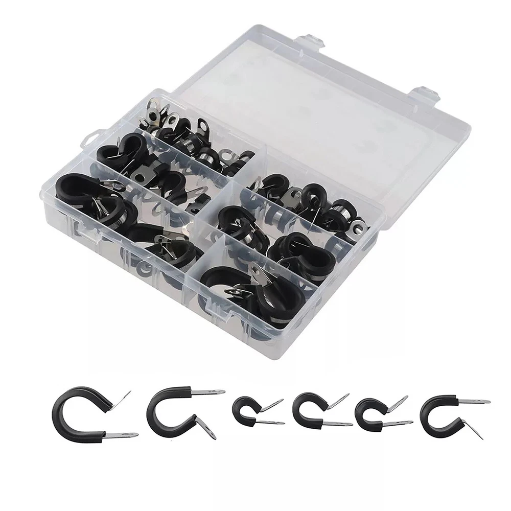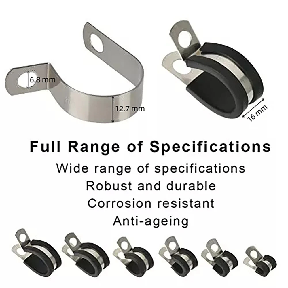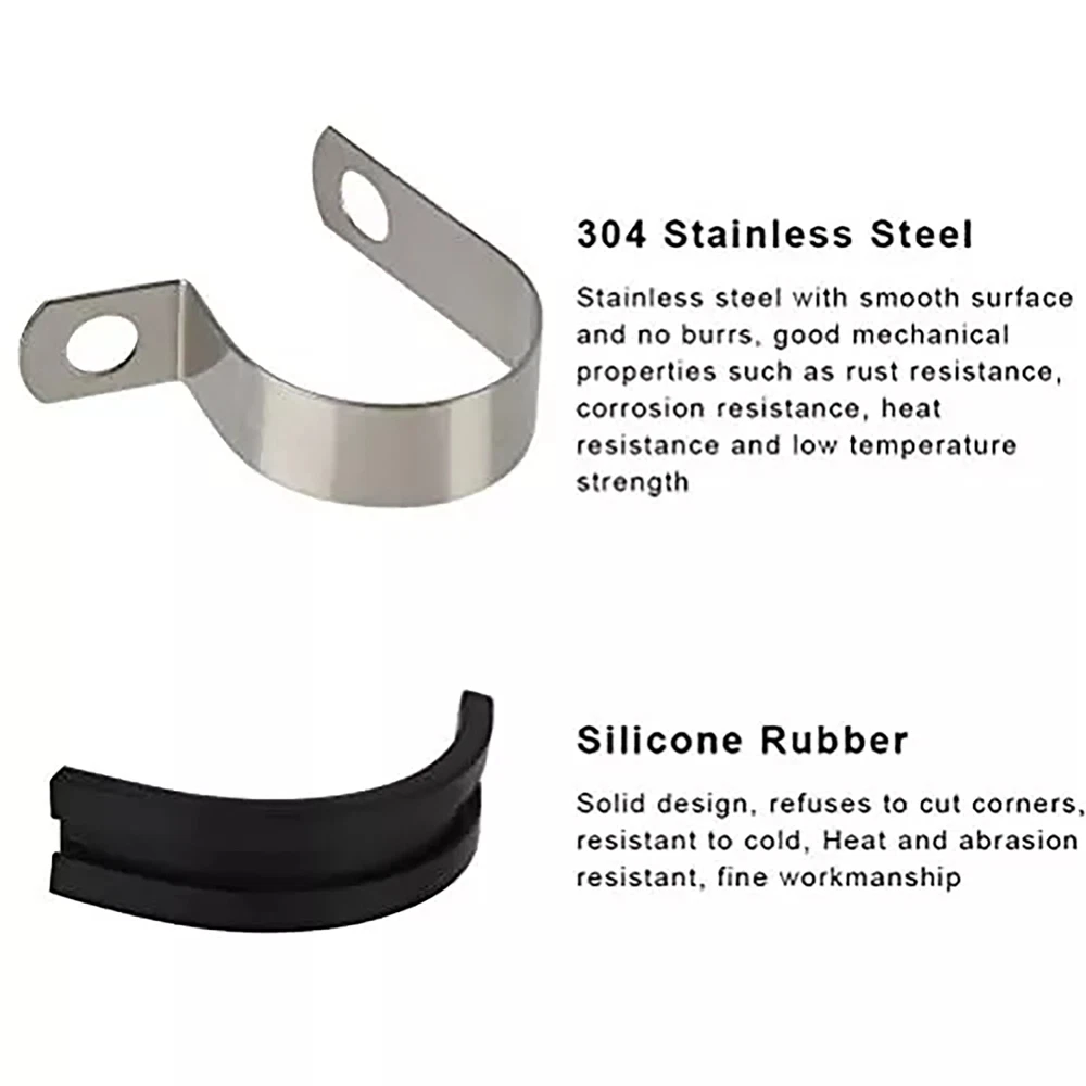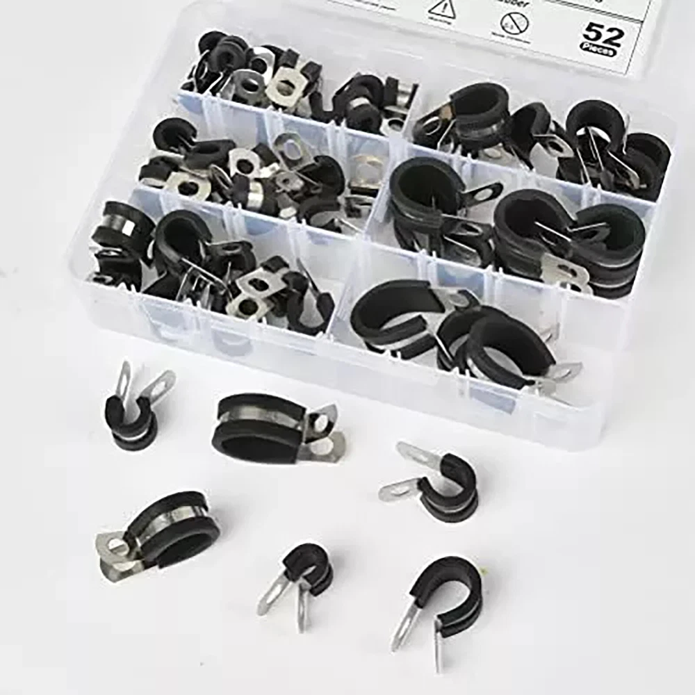 52x Wire Cable Clamps 304 Stainless Steel Wiring Pipe Assortment Kit Cushion
