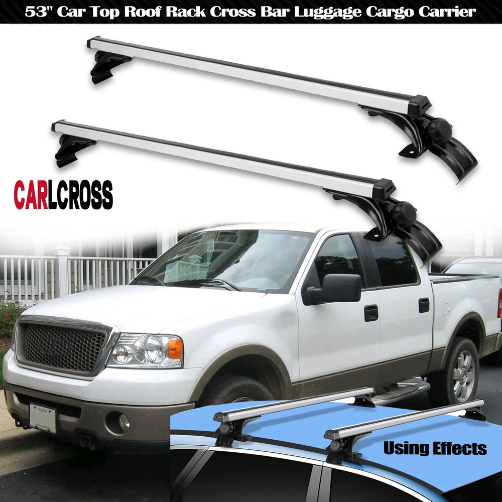 52" Universal Top Roof Rack Cross Bars For Car SUV w/Raised Rails Max.load 150LB 【FITMENT】-- Universal fit most vehicles without any type of side rails, apply to any vehicles with car roof width less than 1370mm(54") . The cross bars provide a perfect foundation for the installation of bike carriers, cargo boxes and other rooftop accessories. 【SAFETY】-- 3 Pair padded clips protect your vehicle from damage and scratches. Hook on car window frames,with skidproof rubber strap. 【HIGH QUALITY】-- Made of premium aluminum, light weight and durable. Load capacity 150lbs when load is evenly distributed. Provide plenty of space to your gear. 【EASY TO INSTALL】-- no drilling/cutting required, no side rails needed. Come with necessary installation tools, and easy to assemble and disassemble in a few minutes. Specific: Condition: New Color: Silver & Black Material: Aluminum Surface Finish: Smooth Aluminum Finish Rail: 53" In Length/ 135cm Weight Capacity: 150LB (68KG). Function: Perfect tool to hold the things when your are on holiday,Such as Cargo bags, Snowboards, Skis, Kayaks, Canoes, Bikes, luggages Package Included: a pair of cross bars, 4X mounting towers, 3 pair of mounting brackets Please check your car roof to make sure these cross bars fit your vehicle before you purchase. Warming Note: Apply to any Vehicles with Car Roof Length Less Than 137cm(54'') Professional installation is highly recommended if you don't know how to handle "Roof Top Rail Tower" is not required for this cross bars, please check above pictures for more details On Jan 16, 2025 at 11:41:55 PST, seller added the following information: