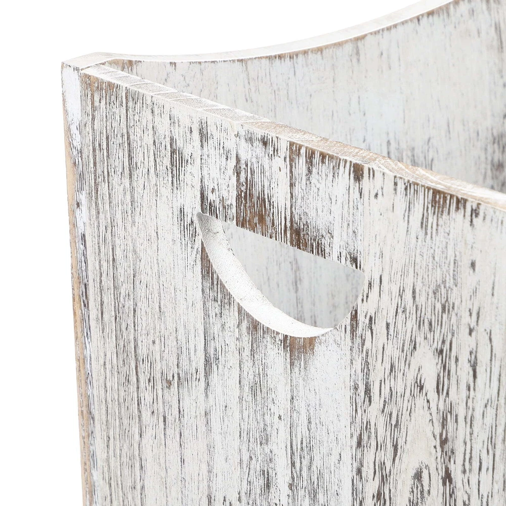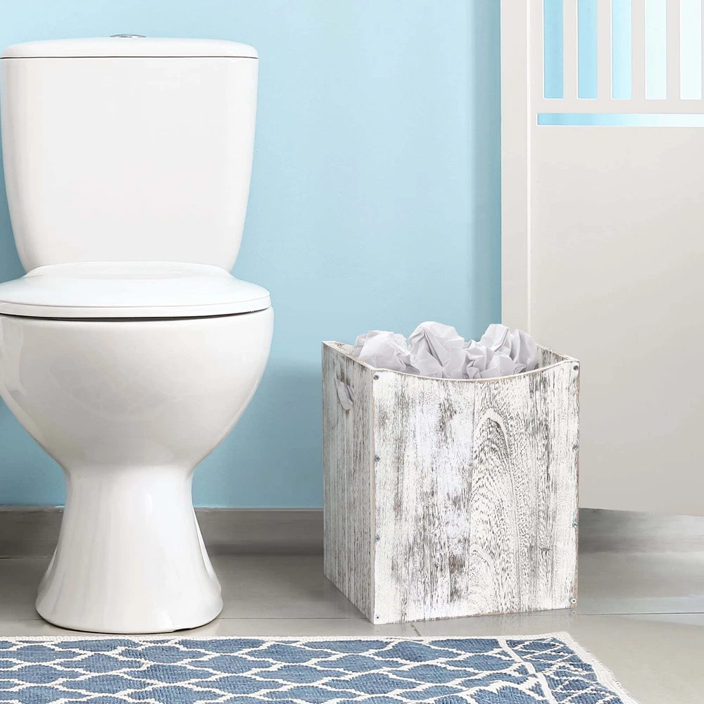 5.3 Gallon Rustic Wood Trash Can Wastebasket with Handles, White-Brown, Set of 2