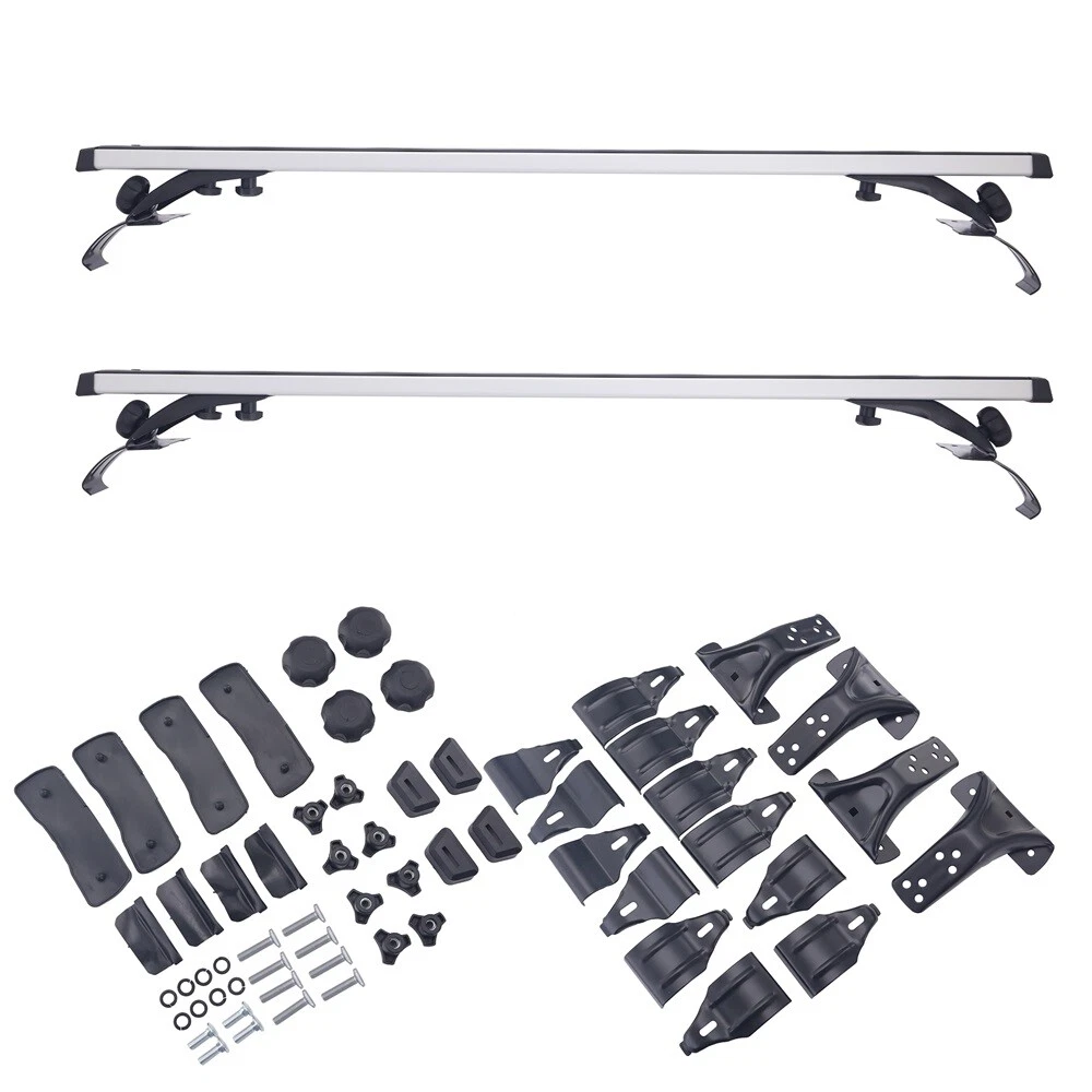 52" Universal Top Roof Rack Cross Bars For Car SUV w/Raised Rails Max.load 150LB 【FITMENT】-- Universal fit most vehicles without any type of side rails, apply to any vehicles with car roof width less than 1370mm(54") . The cross bars provide a perfect foundation for the installation of bike carriers, cargo boxes and other rooftop accessories. 【SAFETY】-- 3 Pair padded clips protect your vehicle from damage and scratches. Hook on car window frames,with skidproof rubber strap. 【HIGH QUALITY】-- Made of premium aluminum, light weight and durable. Load capacity 150lbs when load is evenly distributed. Provide plenty of space to your gear. 【EASY TO INSTALL】-- no drilling/cutting required, no side rails needed. Come with necessary installation tools, and easy to assemble and disassemble in a few minutes. Specific: Condition: New Color: Silver & Black Material: Aluminum Surface Finish: Smooth Aluminum Finish Rail: 53" In Length/ 135cm Weight Capacity: 150LB (68KG). Function: Perfect tool to hold the things when your are on holiday,Such as Cargo bags, Snowboards, Skis, Kayaks, Canoes, Bikes, luggages Package Included: a pair of cross bars, 4X mounting towers, 3 pair of mounting brackets Please check your car roof to make sure these cross bars fit your vehicle before you purchase. Warming Note: Apply to any Vehicles with Car Roof Length Less Than 137cm(54'') Professional installation is highly recommended if you don't know how to handle "Roof Top Rail Tower" is not required for this cross bars, please check above pictures for more details On Jan 16, 2025 at 05:43:26 PST, seller added the following information: