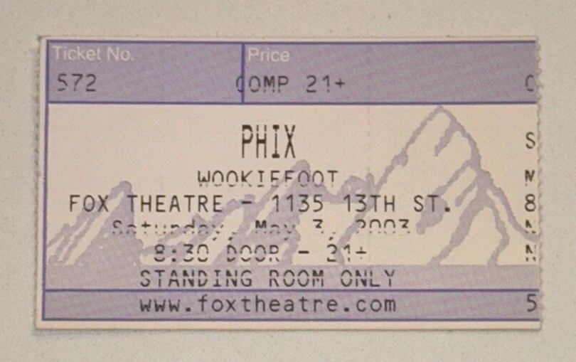 5/3/03 Phix Wookiefoot Concert Music Band Ticket Stub SRO Fox Theater Boulder