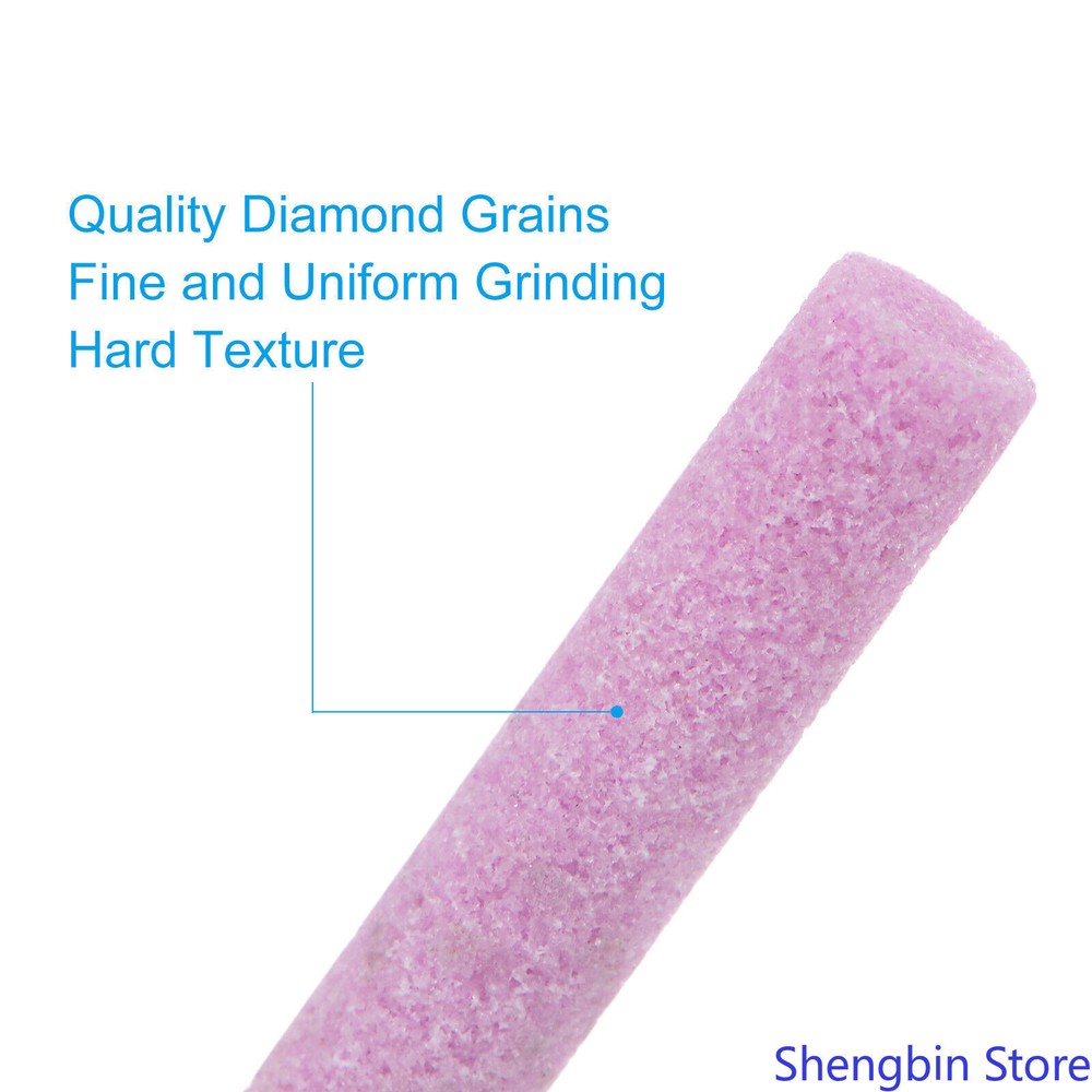 5/32" Diamond Chainsaw Sharpener Sharpening Stone Grinding File Pink 21pcs This stone file is suitable for surface graining, polishing, etc. of various materials such as metal, stainless steel, steel, copper, wood, and plastic. These diamond chainsaw sharpeners are widely used for grinding saw teeth, glass, jade, models, bearings, machinery, and metal rust removal. Specification Material: Hard Carbon Diamond Grinding Head Diameter: 4mm / 0.16 inch Grinding Head Length: 20mm / 0.79 inch Shank Diameter: 3mm / 0.12 inch Total Length: 50mm / 2 inch Packing List: 21 x Sharpening Stones Advantage 1. These chain saw sharpeners are forged with diamonds, they adhere tightly to the surface and are not easy to fall off. The particles are full and evenly distributed, which ensures the stable and efficient grinding of the chainsaw, and is hard and not easy to wear. 2. Wheel grinder replacement is easy to install and can be sanded without removing the chain. The grinding tool accessories save time and effort, and can effectively improve work efficiency, allowing you to complete grinding as soon as possible. Instruction Hold the handle and place the grinding head on the surface to be sanded and rub it back and forth. NOTE: Please check the size carefully before purchasing.