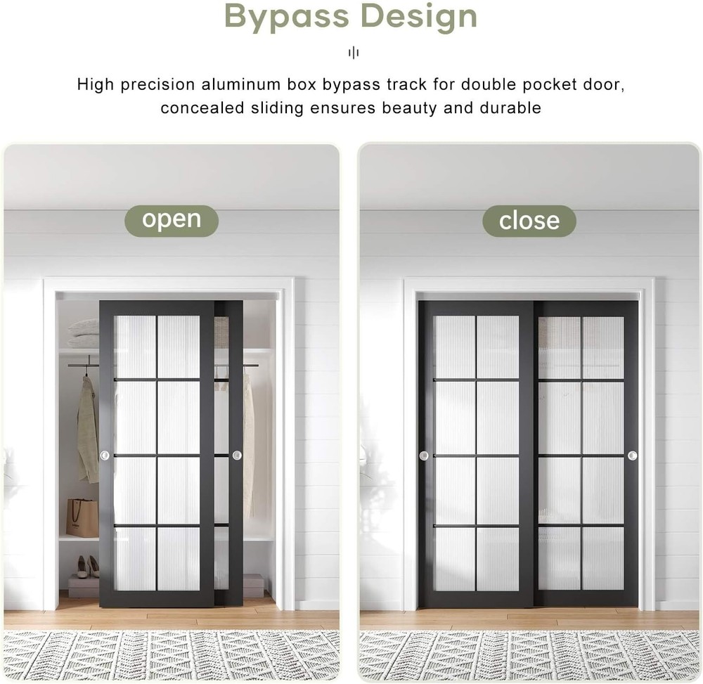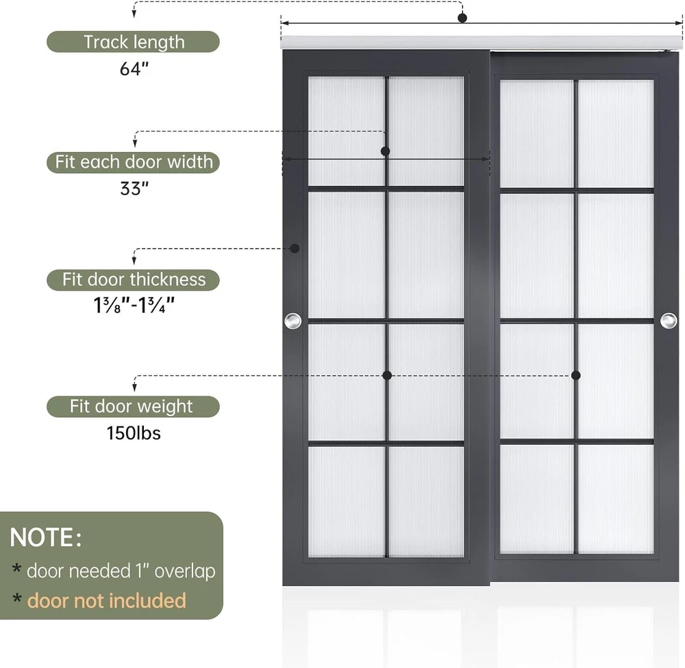 5.3FT Aluminum Bypass Double Sliding Pocket Door Hardware Kit - Elegant Solution