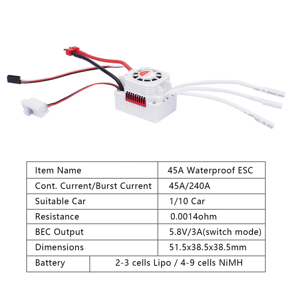 540 4300KV Brushless Motor+45A ESC Combo Set for 1/10 1/12 RC Car Truck