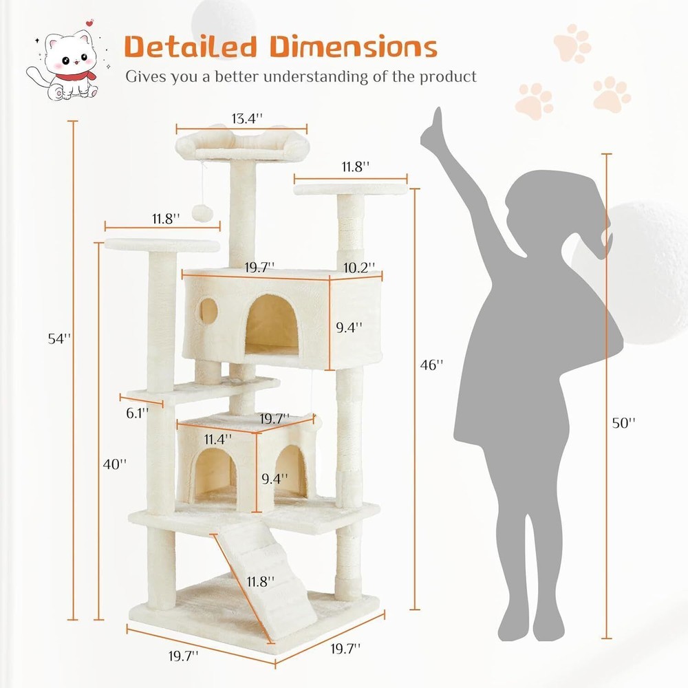 54-Inch Multi-Level Cat Tree Tower with Condo for Kittens in Beige