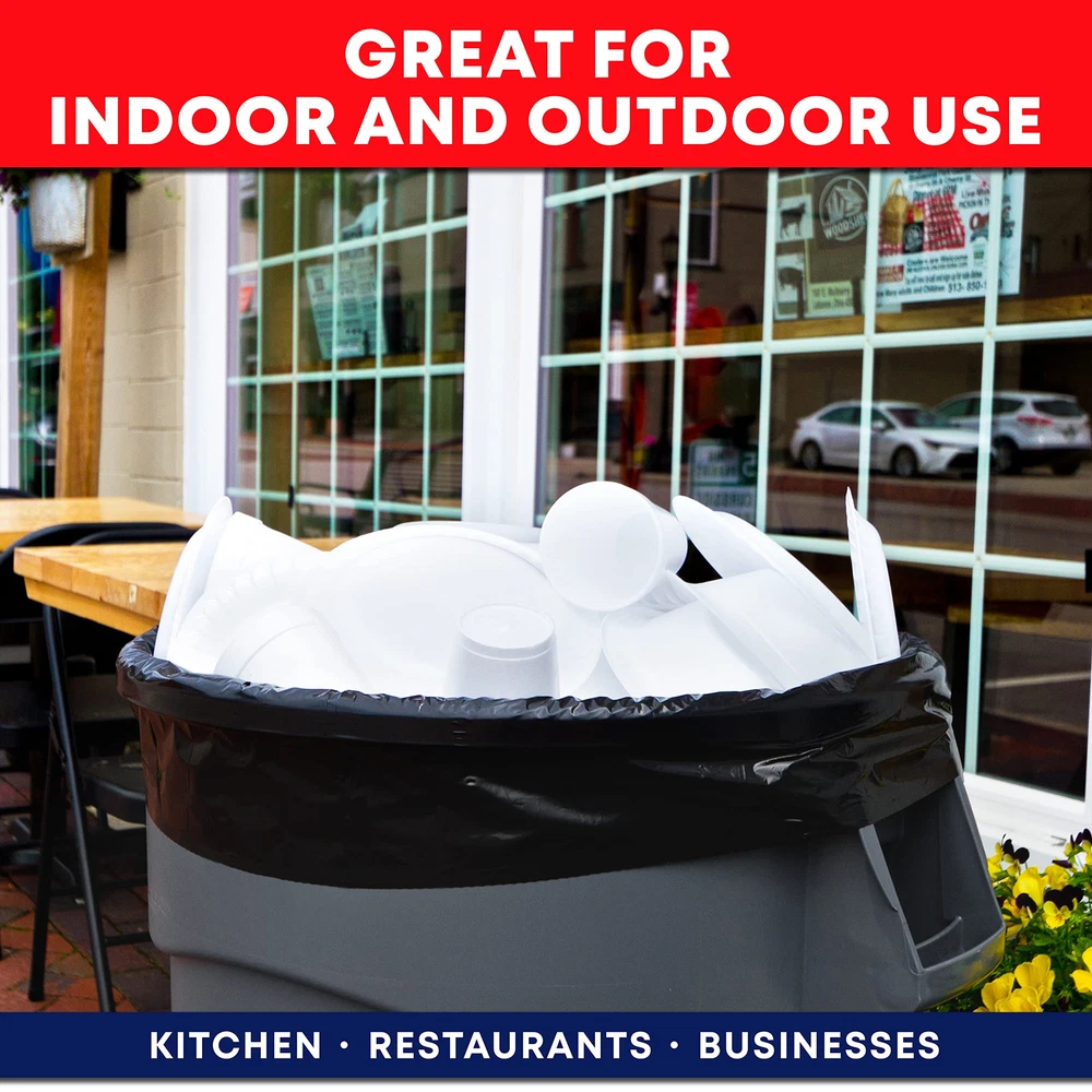 When you are dealing with lots of junk, you want garbage bags that can do the job right. Bags that are big enough that you aren’t constantly filling and tying, and strong enough to carry plenty of trash without tearing. Our extra-large garbage bags are just what you need! With a capacity of 55 gallons, our commercial trash bags help you get the job done quickly and efficiently, and they are puncture and tear-resistant, so you won’t find yourself doubling them up all the time. Our bags are designed to stretch around your trash rather than tearing and letting it all out. Use your bags at home, in the , in the yard, or in the garage - they make great liners for large drums and can be used free-standing, too. Proudly made in the USA and backed by our money-back . Try our bags today and experience the difference that a quality garbage bag makes! packaging may vary 55 Gallon tear and leak resistant. 1.5 mil thick plastic. No need to double bag your trash - our extra-large trash bags are crafted from durable material strong enough to carry both indoor and outdoor trash without leaking or tearing. Durable material. Our large garbage bags are both strong and flexible, designed to stretch around your trash instead of ripping and tearing. It's the perfect trash bag for all of your cleanup and storage needs. Multi use trash bags: Use our extra-large garbage bags for kitchen trash, recycling, lawn debris, yard waste, or whenever you need large trash bags. These big garbage bags come individually folded, making it easy to grab from the box when you need it. Trash liners measure 37" wide x 53" high. 55-gallon capacity: These large trash can liners let you get rid of more garbage with fewer bags. Boost efficiency with fewer trash bags to tie and dump. Perfect for the home, the , or just out back, our large garbage bags can be used in a drum or freestanding. 55-60 gal heavy duty capacity - These heavy duty trash bags are designed to hold more garbage and accommodate large volumes of waste, which means less bags used and fewer trips to the dumpster. Contractor bags perfect for job sites, construction, and yard waste bags.