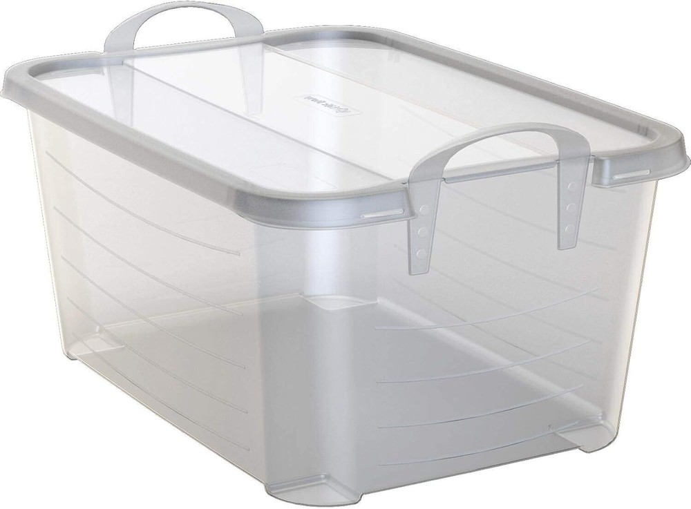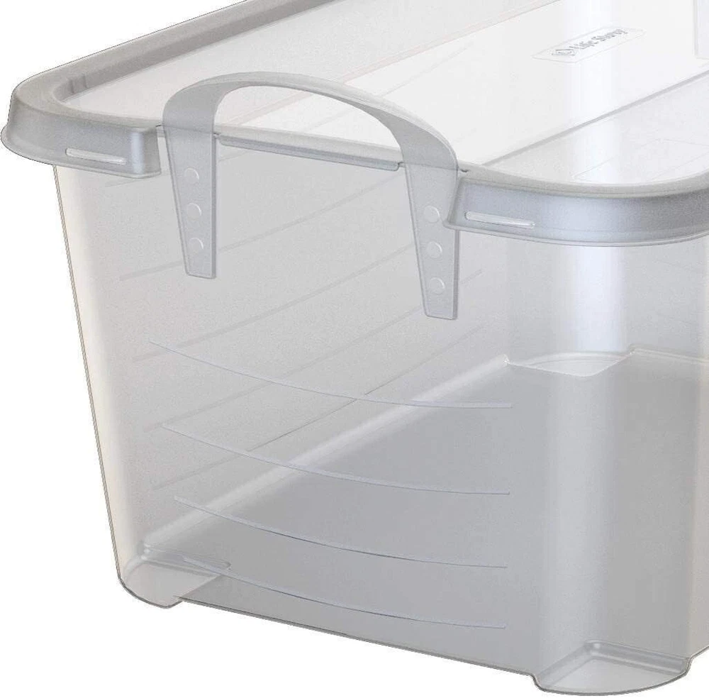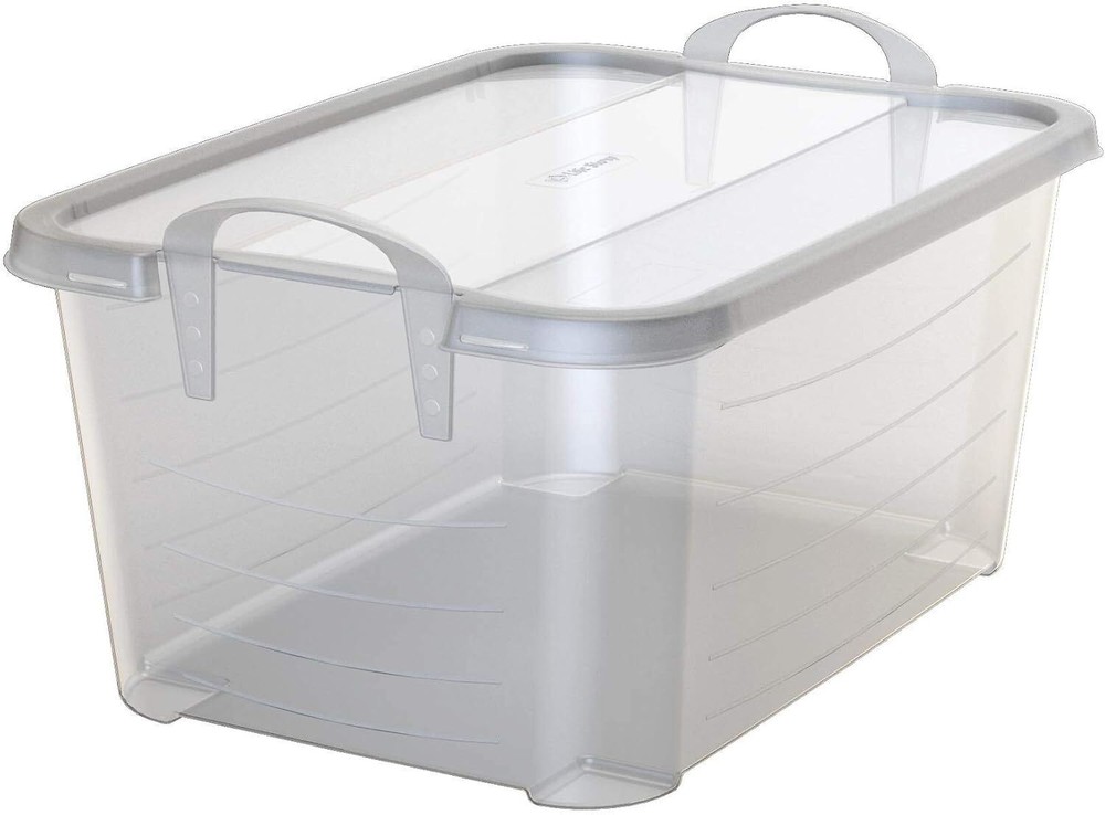 Keep your life clean and organized with the Clear Box storage container. The 55-quart tote is ideal for storing items such as blankets to winter clothes. The see-through plastic allows you to see what is inside the box without having to open multiple containers and the snap locking lid keeps the items dust-free and damage-free. The storage totes are also stackable, which helps to free up even more space in your home, garage, or RV. Features: See-through plastic makes it easy to identify container contents from the outside Specifications: Quantity: 8 Dimensions: 23.6 x 12.3 x 16.9 inches Size: 55-quart Includes snap locking lids Color - Clear Material - Plastic Special Feature - See-through Style - Modern Package List: 8pack/set