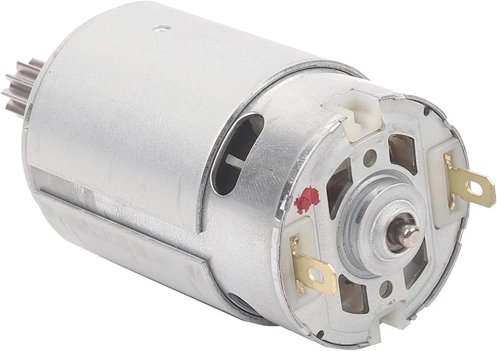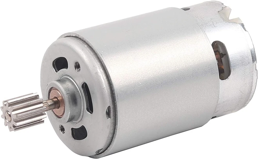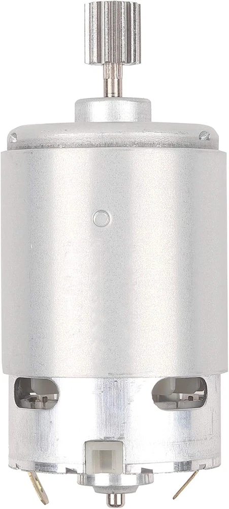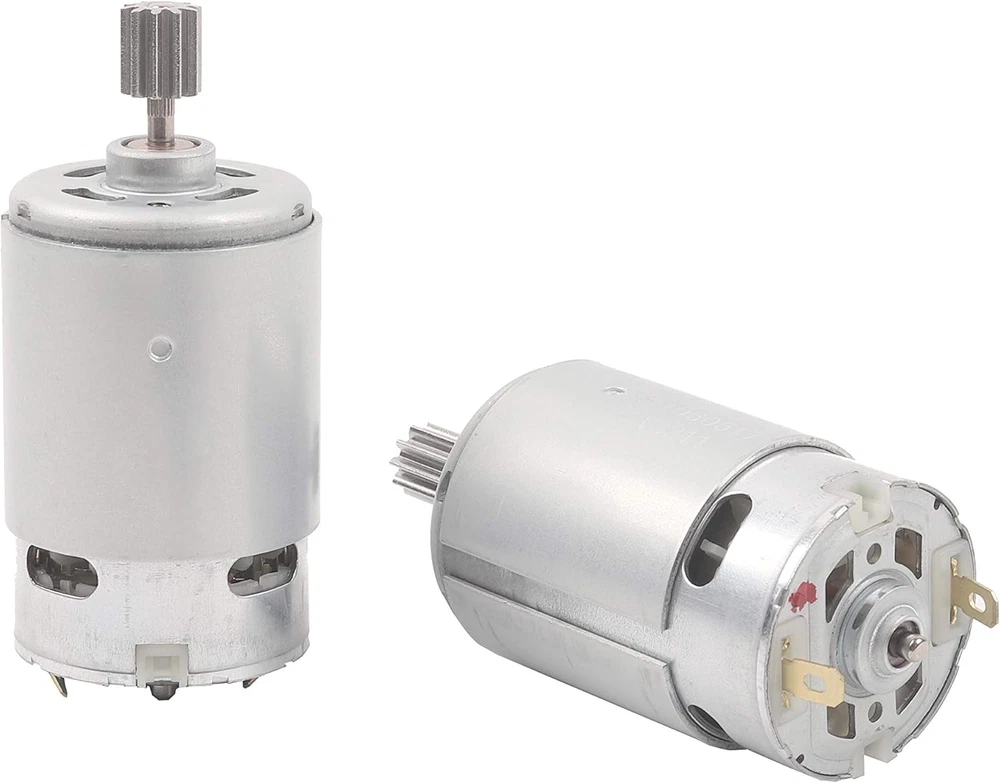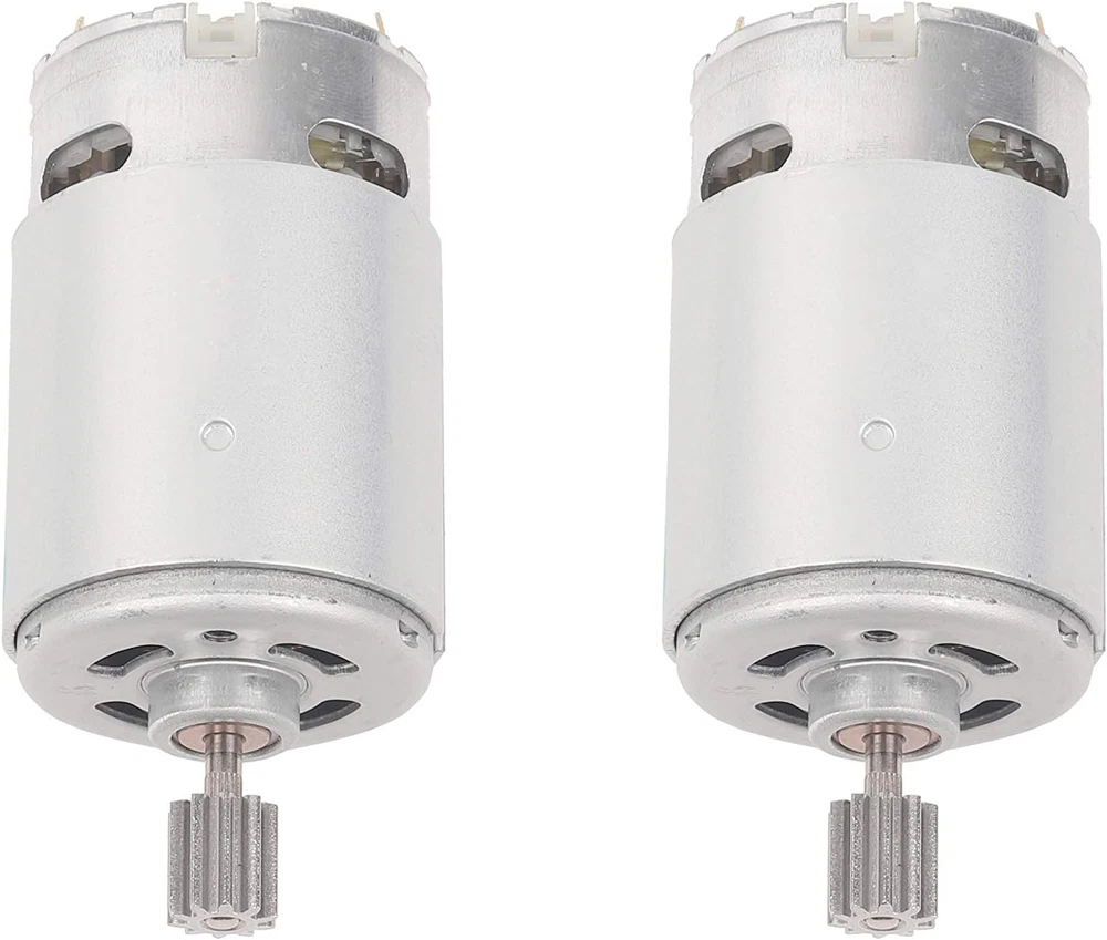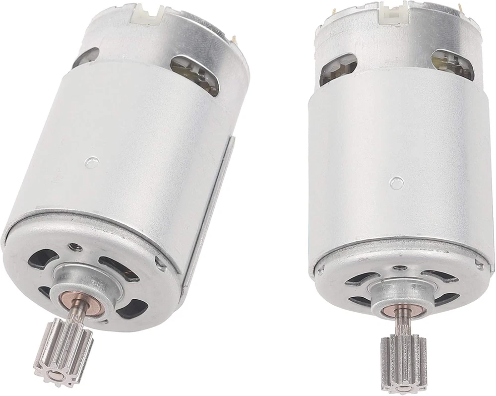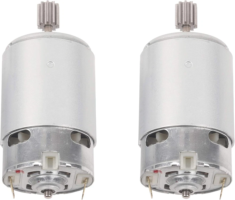 NSD RS550 12V 40000 Motor ( High Speed ) Please compare your original motor before buying this motor Package contains 2 Pcs RS550 Motor Gears installed on the motor and CAN NOT be removed Gear specification : 10Teeth 10mm x 10mm ( 0.39” x 0.39” ) Specifications: Rated Voltage: 12V Speed: 40000RPM Material: Metal Net Weight: 422g Application: Motor is used in the majority of kids ride on cars, can replace the 550 motor directly Packages: - 2 x DC Motor