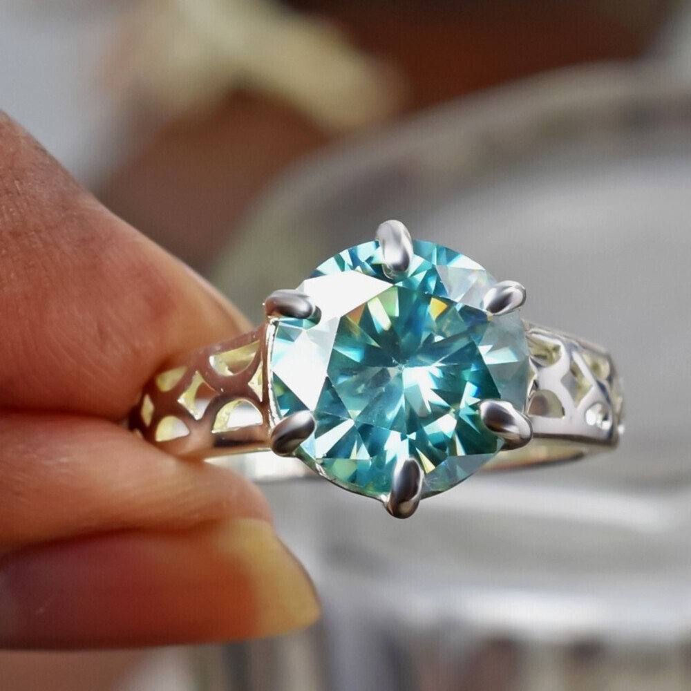 $ 134.964.80 Ct Oval Cut Blue Diamond Ring in 925 Silver Certified Engagement