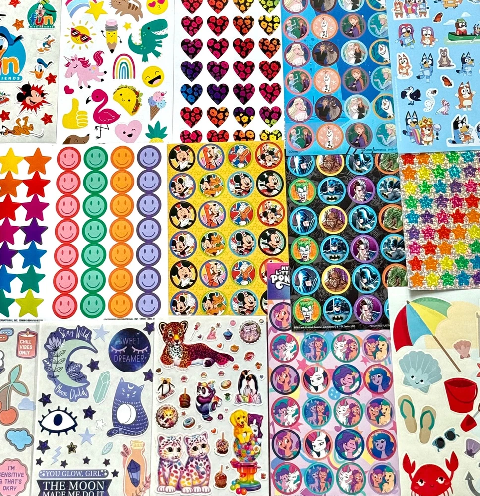 Special Mixed Sticker Lot | The Ultimate Kit | Qty. 550+ Stickers | High Quality Only! Fun Assortment of Puffy, Scrapbook, Cartoons, Bubble, Pop Up Stickers Packs For Everyone! This Bundle will include 550+ Stickers overall! I have included a large variety of pictures of the assortment available. The pictures give you an idea of what you will be receiving. Please Note: You will not receive everything pictured. Please contact me with any special requests. This HUGE Variety of fun designs stickers can be used in parties, classroom, school and home, good for reward for students, potty training, adding inside a birthday card, game activities, entertaining toddlers, etc. Perfect Gifts for Kids & all Occasions: Can be given as a gift for kids, girls, boys, toddlers, teens, students, friends, and classmates, they will love it!