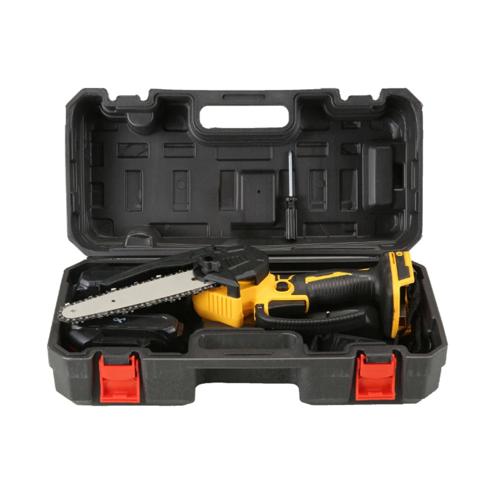 Description: 1. High power single hand saw, single hand logging effortless, light volume, surging power, full electricity easy. Work a morning, long use is not tired. 2. Cutting ging wood pruning, really a machine multi-purpose, volume is small, functional, cost-effective all-around pruning king. 3. Small volume and large power, second cut thick wood without pressure, thick wood for several seconds to cut off, cutting efficiency is improved, saw wood more efficient a top three people. 4. Multiple heat dissipation port design, fast and effective heat dissipation, effectively prevent the motor burning machine. 5. Anti-slip handle, comfortable grip and anti-slip, surface frosted treatment, effectively prevent the continuous grasp of sweating slippage. Specifications: 1. Rated power: 550W 2. Saw chain speed: 50m / min 3. Power supply type: rechargeable type-lithium battery technology Package 1 Included: 1 SET electric chain saw (Flat plugs) 2 * Battery 1 * Charger Package 2 Included: 1 SET electric chain saw (Round plugs) 2 * Battery 1 * Charger