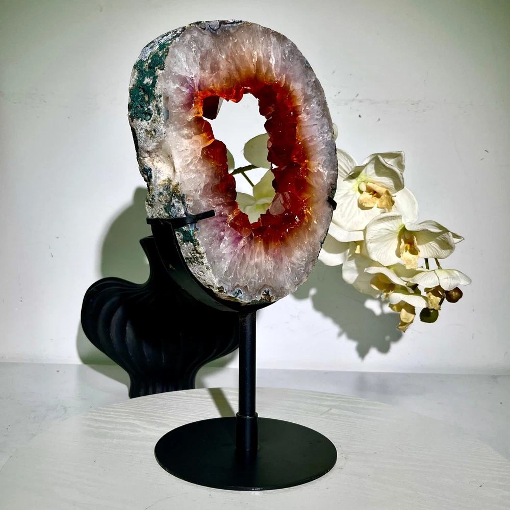 I received my sphere in amazing well packaged and fast shipment. The item was exactly as described and pictured, and the value was great. I really love this sphere. I have it in my living room on the mantle. It is absolutely stunning. I would highly recommend the seller.