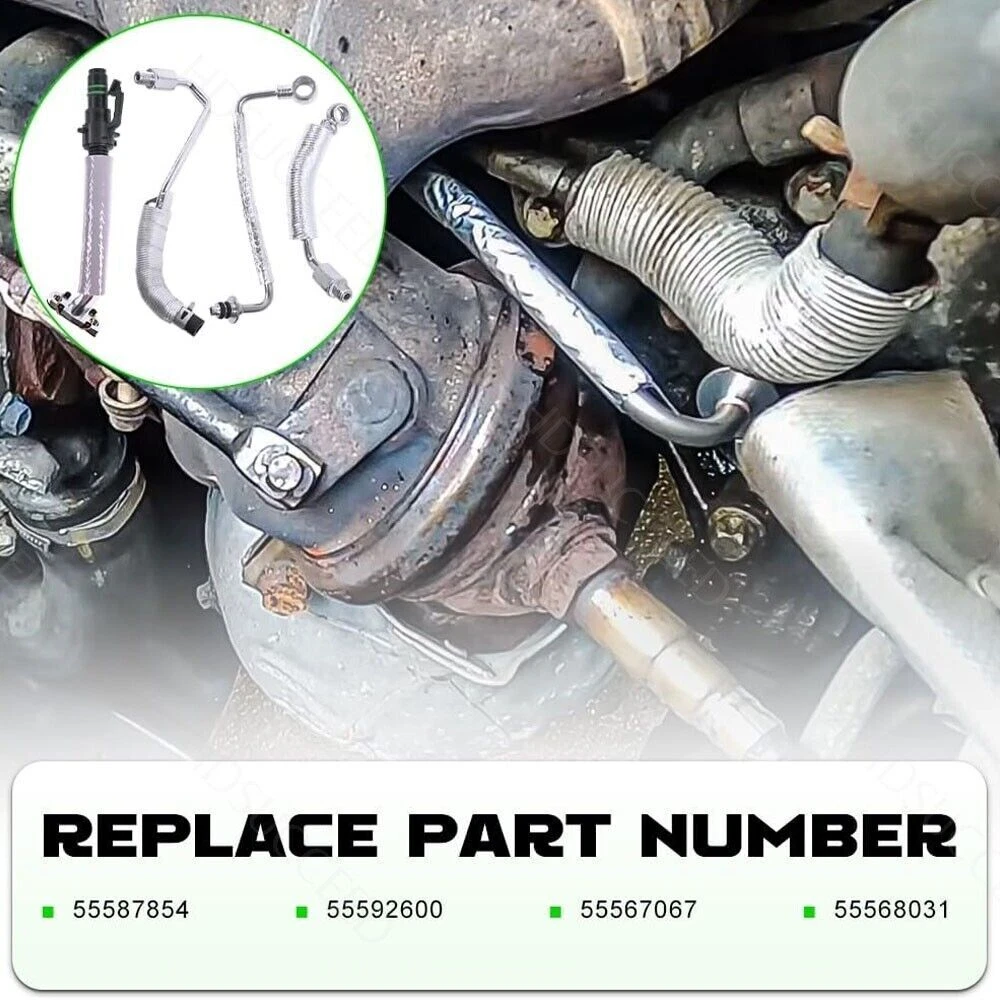 55567067 55568031 55587854 25198546 For Chevy Engine Turbo Oil Return Pipe Tube ITEMS DESCRIPTION: 100% Brand New. (Never Been Used or Installed) Designed to fit like the part for easy routing in tight engine compartments. Engineered improvements have been incorporated into parts with a high failure rate to improve performance and longevity. A proper functioning Turbocharger Oil Line is needed to avoid engine failure Direct replacement for a proper fit every time This part has undergone SAE J343 testing for burst, tensile, cold bend and leakage Turbocharger Oil Return Line also available Fitment: For 2013-2019 Buick Encore 1.4L L4 For 2011-2019 Chevy Cruze 1.4L L4 For 2012-2019 Chevy Sonic 1.4L L4 For 2013-2019 Chevy Trax 1.4L L4 For 2016 Chevy Cruze Limited 1.4L L4 Package Includes: TURBO OIL FEED PIPE *1 TURBO OIL RETURN DRAIN PIPE *1 1pcs 8.5" Turbo Charger Coolant Return Hose Line 1pcs Turbo Charger Cooling Feed Line Pipe Professional installation recommended(No Instruction Included) NOTE: Communication is the best way to solve the problem. If you have any problems after purchasing, please contact us in time, before opening return or case.