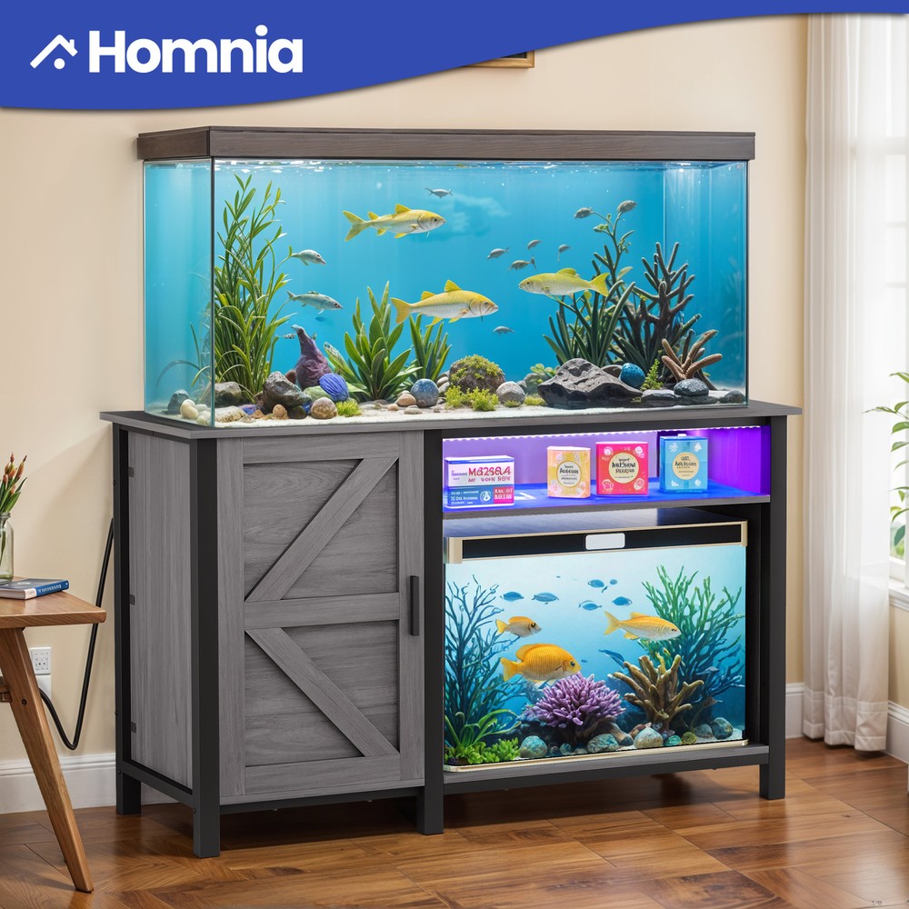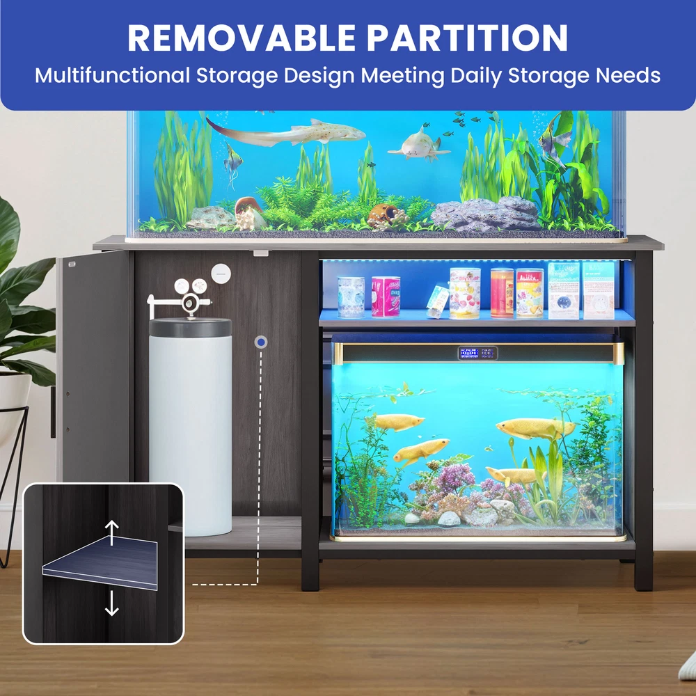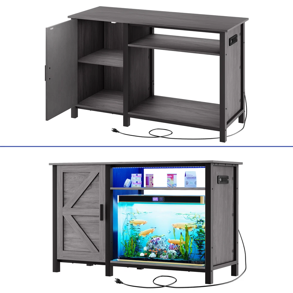 900 LBS Capacity 55-75 Gallon Aquarium Fish Reptile Tank Stand LED Power Ports Product Description NOTE: Professional Installation would be Highly Recommended. Description: 1. Color: Gray 2. Material: Wood, Iron 3. Room Type: Livingroom, Hallway, Bedroom 4. Features: Built In Power Outlets, Thick Wood, Adjustable Lights Features: Extra Small Aquarium: - Accommodates a 20-gallon mini aquarium alongside the main 55-75 gallon tank. - Allows for diversifying aquatic life in one convenient place. High Capacity: - Features three additional support bars under the tabletop. - Supports 55-75 gallon aquariums with a weight capacity of up to 900 lbs. - Ensures safety and stability for large aquariums. Innovative Design: - Equipped with an RGB light strip and plug-in design for enhanced aesthetics. - Includes a barn door for a rustic touch, suitable for various living spaces. Convenient & Adjustable: - Offers ample storage space with adjustable dividers. - Ideal for storing fish feed, aquarium accessories, and related items. Easy Assembly: - Delivered unassembled for simple setup. Dimensions: 1. Product Dimensions: 51.9"L x 20.4"W x 31.4"H 2. Capacity: 2 Drawers Package Included: 1. Aquarium Stand ( AQUARIUM IS NOT INCLUDED ) 2. Assembling Hardware Kits 3. Instruction Manual Book Shipping 1. Normally the item will be dipatched within 1 business day if payment is cleared before 12pm PST. 2. Please verify the correct shipping address in your PayPal account before making the payment. We only dispatch the item to the address that is sent to us at the time of checkout. 3. We don't ship to Hawaii, Alaska, Puerto Rico, APO/FPO/PO Boxes. 4. We don't provide local pick-up service. 5. Normally we will use USPS, UPS, FedEx & LTL to dispatch items. Payment 1. We accept PayPal and credit card. 2. We will ship to the confirmed Paypal shipping address that is provided with the payment only. Return 1. 30 days Money Back Guarantee. 2. Please contact our customer service to receive a RMA form first if want to return the item. 3. All returned items MUST in new condition with the original package. Contact If has any problem, please contact us by sending an ebay message. Our customer service will resolve the problem as soon as possible. On Aug 2, 2024 at 06:05:32 PDT, seller added the following information: On Oct 3, 2024 at 05:08:56 PDT, seller added the following information: On Mar 11, 2025 at 23:05:09 PDT, seller added the following information: On Jun 10, 2025 at 20:51:37 PDT, seller added the following information: