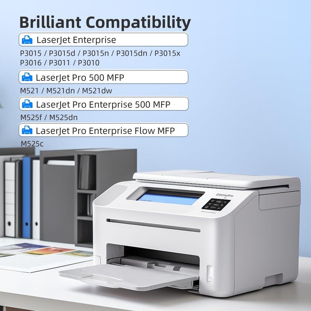 Model Number: 55A toner cartridge (CE255A), compatible replacement for HP 55A CE255A toner Wide compatibility: Our CE255A 55A toner cartridge for HP 55A toner cartridge works for HP P3015 P3015dn P3015x Pro 500 MFP M521dn M521dw M521 M525 series printer Package Content: 2 x CE55A 55A Toner Cartridge ( Black), 1 x User Guide. Please read the user guide to ensure proper installation Page Yield (approx.): Each CE255A 55A toner cartridge can print up to 6000 pages at 5% coverage on A4 paper. 2 Packs replacement for HP 55A CE255A can provide 12000 pages totally Excellent Printouts: CE255A 55A Toner Cartridge - Replacement for HP 55A CE255A toner cartridge uses secure materials and refined toner to give you a smooth printing experience and clean prints