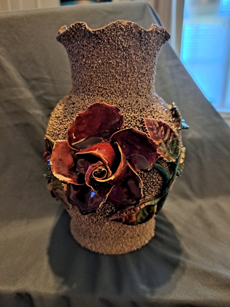 This 5.5" medium-sized ceramic vase features a textured finish with a multicolor splatter design, creating a unique and eye-catching look. The vase is specifically designed in the pattern of a flower, with a rose as the subject. Perfect for displaying flowers or as a standalone decorative piece, this vase adds a touch of elegance to any space.