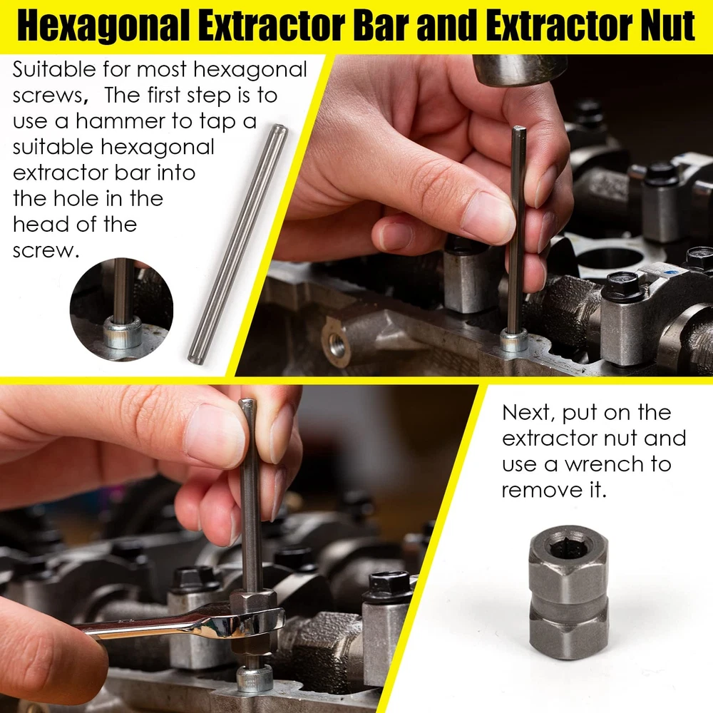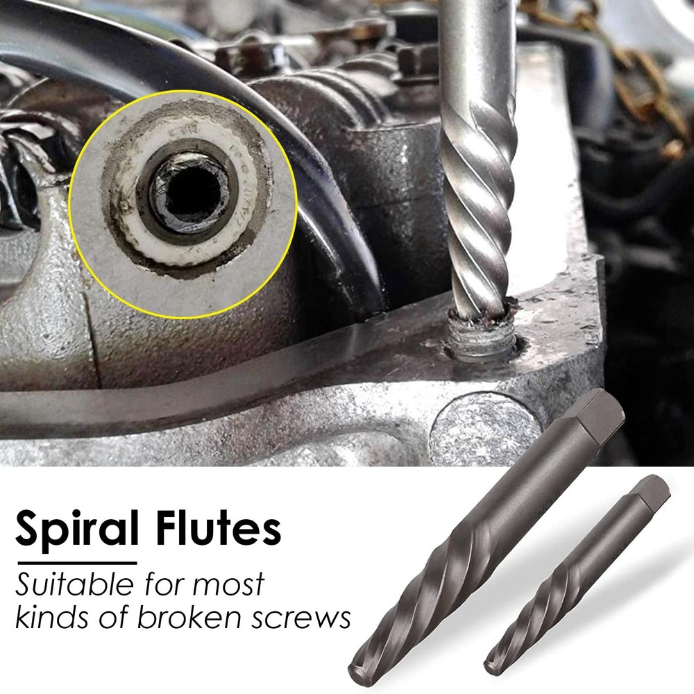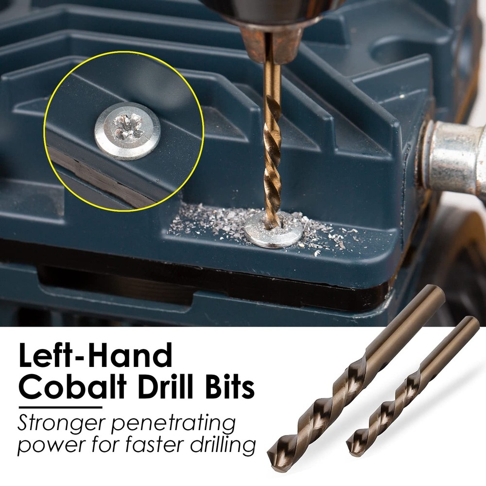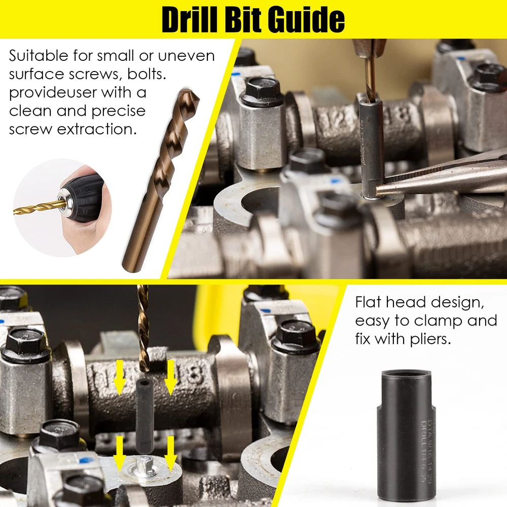 55-Piece Screw Extractor & Broken bolt extractors, Multi-spline Extractors, and Drill Bits for Removing Damaged, Frozen, Rusted, Rounded-Off Bolts & Screws 【PREMIUM INDUSTRIAL GRADE MATERIAL】 - Made of heat-treated high-quality CR-MO steel (chromium-molybdenum steel),is the ideal tool for removing broken screws, bolts, studs, fittings, threaded pipes and pins. 【55-PIECE MULTIFUNCTIONAL SCREW & BOLT EXTRACTOR SET】- It contains 16 high speed steel drill bits, 13 multi spline extractors, 10 drill bit guide bits, 6 spiral screw extractors , 5 extractor pins, 5 nut extractors. Multiple specifications and sizes to meet your various work needs. 【WIDE RANGE OF APPLICATIONS】Our screw and bolt extractor kit makes fastener extraction a breeze. the Drill Bit Guide complemented by the HSS drill bit provides the user with a clean and precise screw extraction. Damaged screws and bolts will be easily extracted. 【EXACT SIZE】:16 high speed steel drill bits Size:(5/64",7/64",1/8",5/32",3/16",7/32",1/4",19/64",9/32",5/16",11/32",3/8",13/32",7/16",15/32", 1/2"), 13 multi spline extractors Size:(1/8",5/32",3/16",7/32",1/4",9/32",5/16",11/32",3/8",13/32",7/16",15/32", 1/2"), 10 drill bit guide bits:(G1 to G10), 6 spiral screw extractors: (NO.1 to NO.6), 5 extractor pins:(#1 to #5), 5 nut extractors:(#1 to #5). 【PREMIUM SERVICE】 - If you have any problems with our products. Contact our professional after-sales service team through Amazon, the after-sales team will contact you and solve your problem in time.