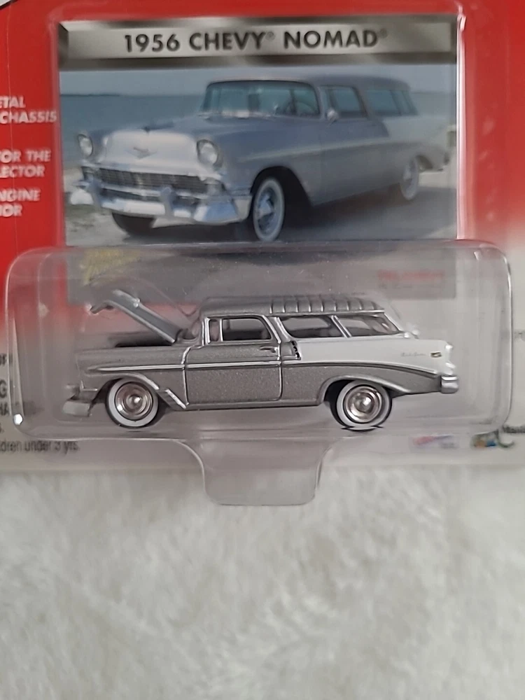 This limited edition vintage replica of the classic '56 Chevy Nomad is a must-have for any diecast car enthusiast. Made by Johnny Lightning, this 1:64 scale model is beautifully crafted with silver paint and features intricate details such as the Chevrolet logo. The model is made of high-quality diecast material, ensuring its durability for years to come. This collectible item is perfect for those who appreciate the beauty of vintage cars. With its unique design and limited edition status, it is sure to be a prized possession for any collector. Add this '56 Chevy Nomad to your collection today!