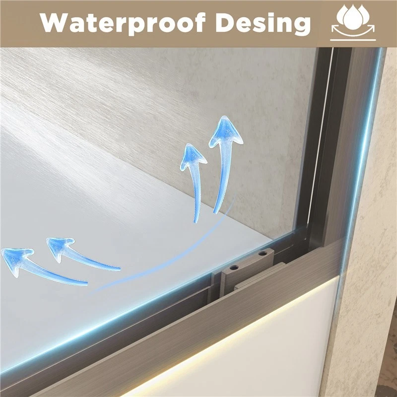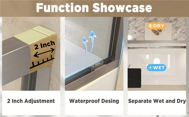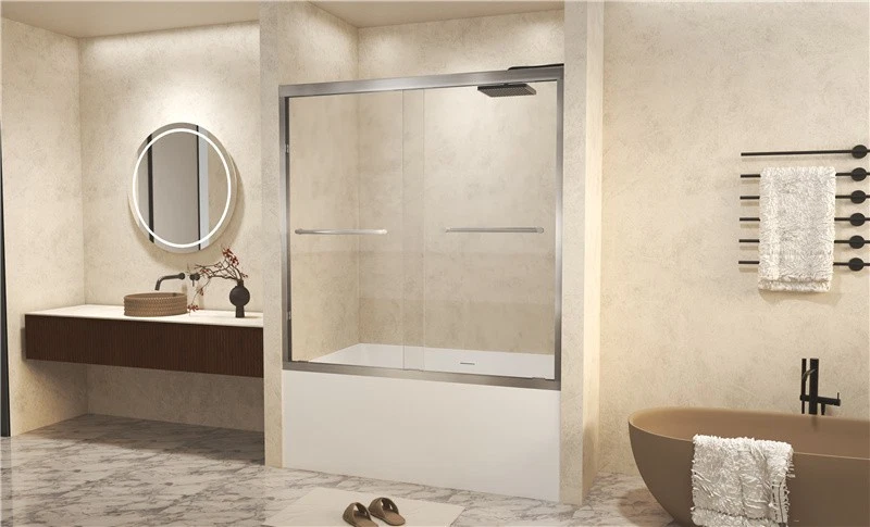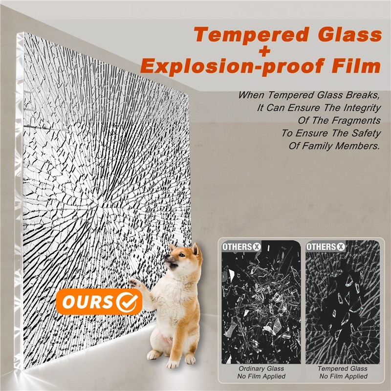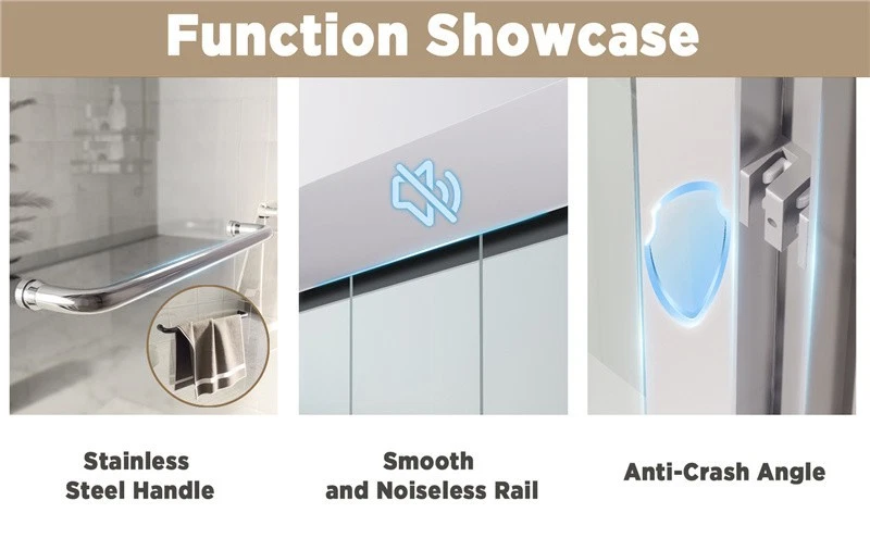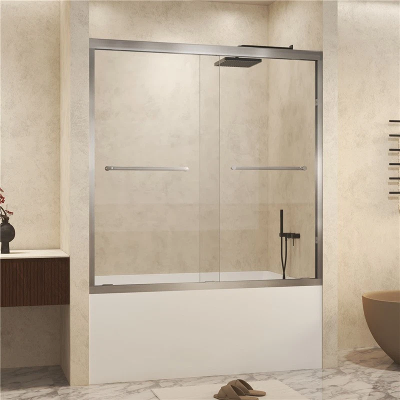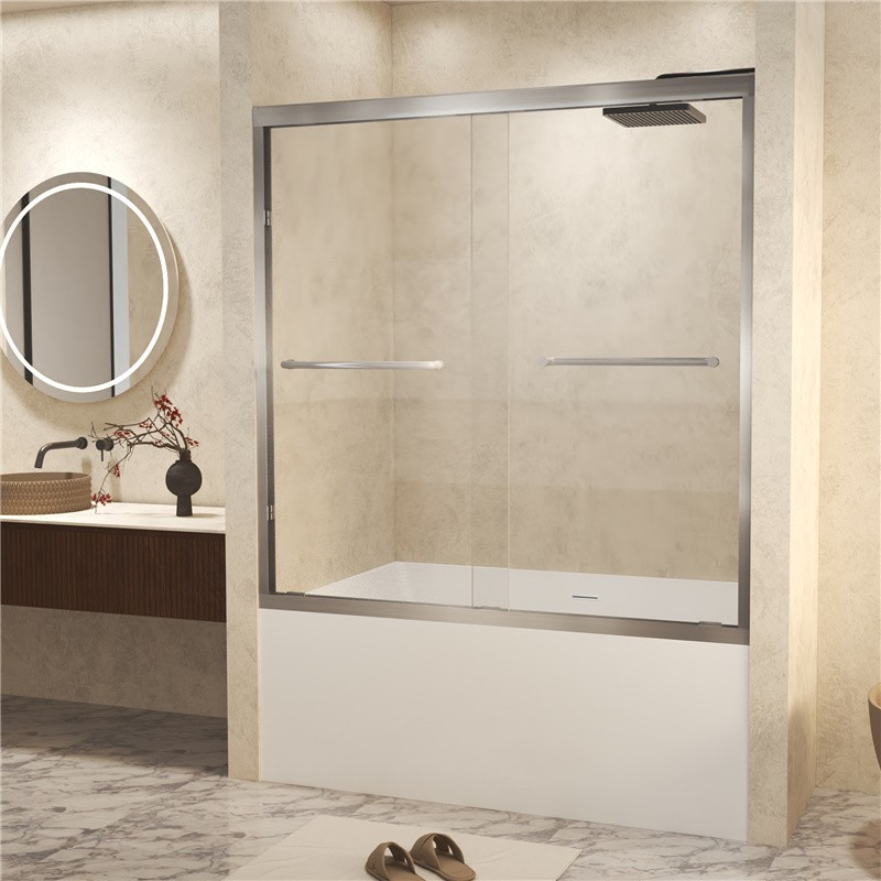 Features and Details: Durable Aluminum Frame: Lightweight, corrosion-resistant, and long-lasting. Stainless steel long handle: Rust-proof and oxidation-resistant, maintaining a shiny finish over time. 6mm(1/4")Tempered Glass with Safety Film: Shatterproof protection for the safety of your family. Modern Minimalist Design: Matte black frame paired with transparent glass, matching any bathroom style. Easy-to-Clean Surface: Resists dirt buildup for effortless maintenance. Simple Installation: No professional tools required; quick and easy assembly. SCGG Certified: Guaranteed quality for peace of mind. Specification: Color: Brushed Nickel Main Material: Tempered Glass Item Size: 60" W × 0.25" D ×60"H Product Weight (lbs.): 93.24