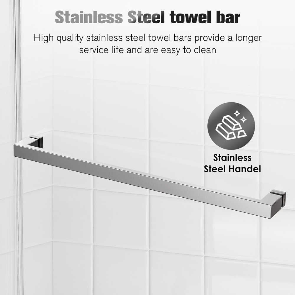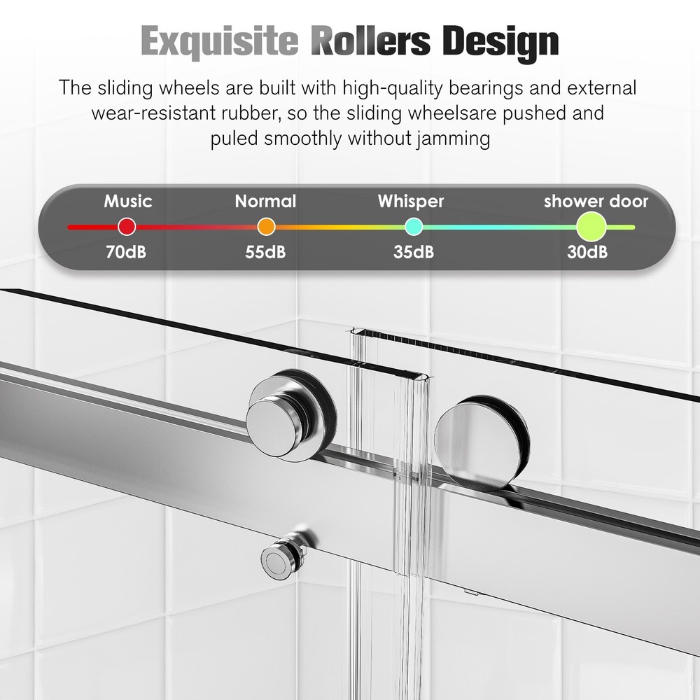 △Please be noted that this product comes in an extra large package,can only be transited and delivered by truck delivery,which requires accurate recipient phone number to well deliver. This large package takes longer to arrive. Product Information Item Code S00011 Product Type Combo Item Product Name 56-60 inches W *76 inches H Frameless Double Sliding Soft-Close Shower Door in Chrome, 3/8 inches (10mm) Thick SGCC Tempered Glass Door Place of Origin China Main Color Chrome Main Material Glass+Metal Product Dimensions Assembled Length (in.) 60.00 Assembled Width (in.) 76.00 Assembled Height (in.) 0.38 Weight (lbs) 187.00 Package Size Sub-item 1: P174988 Package Quantity: 1 63.58 * 9.45 * 3.54 in. 24.09lbs Sub-item 2: P143500 Package Quantity: 2 79.53 * 35.43 * 2.17 in. 93.28lbs Product Features · DOUBLE BYPASS SLIDING: This frameless shower door can be adjusted from 56 to 60 in width by cutting, maximize your bathroom layout of our double sliding door system, designed for easy access while using minimal space for smooth, unobstructed movement. The door body is light and flexible, with a long mechanical life, and provides smooth opening and closing. · SAFE & STYLISH BATHROOM PARTITION: This product is made of high quality 3/8"(10mm) SGCC certified tempered glass for impact resistance and high tensile strength. Tempered glass surfaces are smooth and easy to clean and maintain, keeping your bathroom clean and tidy at all times. · EXCELLENT WATERPROOF and DENOISE PERFORMANCE: This shower door is designed with a focus on water and denoise resistance. Its premium materials and advanced construction ensure a watertight seal and denoise function, preventing any water from escaping your shower and onto your bathroom floor, reducing sliding noise and providing you with a comfortable bath experience. · CLASSIC AND HIGH-QUALITY MATERIALS: The tub shower door's main structure is made of lightweight and durable aluminum alloy with stunning and sophisticated chrome finish, which offers excellent corrosion and oxidation resistance, ensuring the stability and durability of the shower door without deformation over time. · EASY INSTALLATION: The complete packaging of the tub door includes all necessary components, ensuring a smooth and unobstructed installation process. And the packaging comes with an easy to understand installation guide that covers component preparation and step-by-step installation. How to Measure Your Shower Space ? Measuring the size of your enclosure is the first step toward a perfectly fitted installation. The following guidelines can help you achieve a precise measurement: 1. Ensure that finished wall material is in place before measuring. 2. Take lengthwise measurements at the bottom, center, and top of your enclosure. 3. Check all surfaces and walls for level. If any surface is out of level by 3/8 inches or more, a tapered filler is recommended. 4. Measure your available height (from shower curb to ceiling) and requested height (from shower curb to the desired height of your door) ------------------------------------------------------- Do Read before You Buy : Refund& Return -Returns are accepted within 30 days.Any problems, please feel free to contact us by ebay message first, let's figure problems out together,your email will be replied within 1 business day. -We provide free Return service, but return shipping cost will be on you in below circumstances : 1. C hanged your mind or do not need /want the item or other personal reasons. 2.Items may slightly differ from photo s in terms of color and lighting differences & on different monitor’s display. 3. Manual measurement has been used, there may be some reasonable error range. 4. Choos ing the wrong size , type or color cause s unfit ting problem . Or didn't read specifications and descriptions, causes real item is different with own imagination or expectation. 5. Buyer did not know how to install or Use the item 6.Find a better price elsewhere . -Returns for free / free Replacement / free parts only happens in condition of product issue/ arriving broken /wrong item or missing parts. -For the quality issue , defective photo s must be attach ed in mails / when Return. Shippment Warning : if we shiped out the item and buyer wants to cancel the order or change address,buyer need to pay possible shipping cost . Please cancel the order or Change address before we ship out. After sals Service -we are responsible for accessories missed ( please contact us first ,and attach photo of what you've received ) -we are responsible for all losses caused by product quality issues ( Resend or Refund, please also attach defective photo s) Feedback We do appreciate hav ing such opportunity to solve the problem before leaving feedback s . Cause negative feedback solve s NO problem, but we DO ! Hope you have a good time shopping in our store! We are honored !
