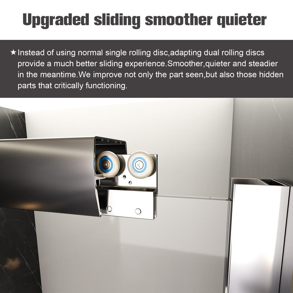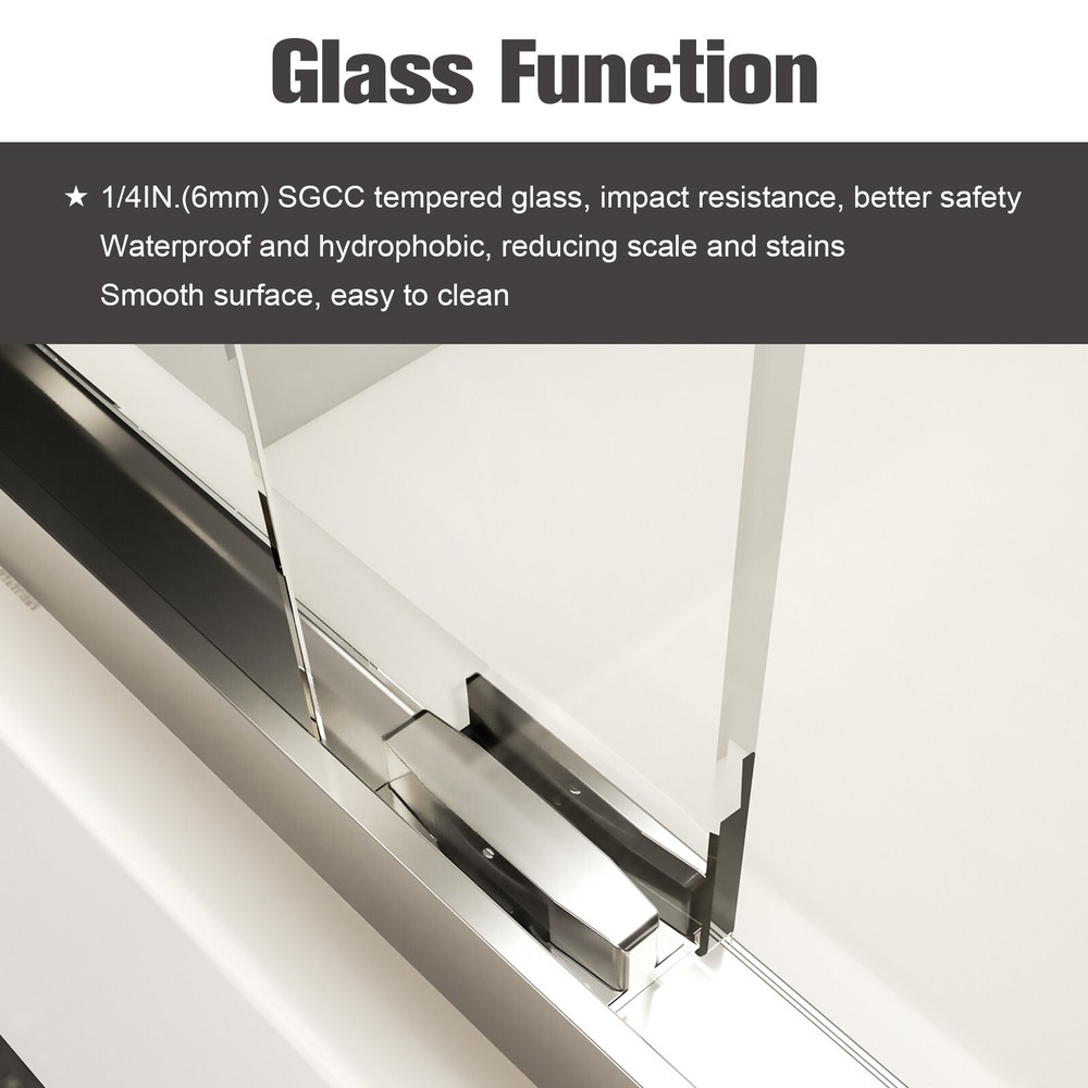56-60"W*58"H Semi-Frameless Sliding Tub Shower Door 1/4'' Tempered Glass, Chrome Product Information Item Code: W1552P143493 Product Type: General Item Main Color: Chrome Main Material: Glass+Metal Product Name: 56"-60"W*58" H Semi-Frameless Double Sliding Tub Door, Bypass Bathtub Shower, 1/4" (6mm) Thick SGCC Tempered Glass Door with Explosion-Proof Film, Chrome Product Dimensions Item Length: 56-60in Item Height: 58in Net Weight: 81.40 lbs Package Size Length (in.): 61.70 Width (in.): 38.20 Height (in.): 3.60 Weight (lbs.): 91.08 Specifications: Installation Size: Min 56'' to Max 60'' Width x 58 Height Door Opening Size: 2 3 to 27 inch Glass: 1/4" (6mm) Thick SGCC Tempered Glass Handle Material: Stainless Steel Side & Bottom Tracks Material: Aluminium Features: · DOUBLE BYPASS SLIIDNG: This semi-frameless bathtub door can be adjusted to 56 and 60 in width by cutting, maximize your bathroom layout of our double sliding door system, designed for easy access while using minimal space for smooth, unobstructed movement. The door body is light and flexible, with a long mechanical life, and provides smooth opening and closing. · SAFE & STYLISH BATHROOM PARTITION: This product is made of high quality 1/4"(6mm) SGCC certified tempered glass for impact resistance and high tensile strength. The surface is covered with explosion-proof film, increase the strength of the glass, avoid the splinters splashing hurt. Tempered glass surfaces are smooth and easy to clean and maintain, keeping your bathroom clean and tidy at all times. · EXCELLENT WATERPROOF PERFORMANCE: This tub shower door is designed with a focus on water resistance. Its premium materials and advanced construction ensure a watertight seal, preventing any water from escaping your shower and onto your bathroom floor. · CLASSIC AND HIGH-QUALITY MATERIALS: The tub shower door's main structure is made of lightweight and durable aluminum alloy with stunning and sophisticated matte black finish, which offers excellent corrosion and oxidation resistance, ensuring the stability and durability of the shower door without deformation over time. · EASY INSTALLATION: The complete packaging of the tub door includes all necessary components, ensuring a smooth and unobstructed installation process. And the packaging comes with an easy to understand installation guide that covers component preparation and step-by-step installation. Do Read before You Buy : Refund& Return -Returns are accepted within 30 days.Any problems, please feel free to contact us by ebay message first, let's figure problems out together,your email will be replied within 1 business day. -We provide free Return service, but return shipping cost will be on you in below circumstances : 1. C hanged your mind or do not need /want the item or other personal reasons. 2.Items may slightly differ from photo s in terms of color and lighting differences & on different monitor’s display. 3. Manual measurement has been used, there may be some reasonable error range. 4. Choos ing the wrong size , type or color cause s unfit ting problem . Or didn't read specifications and descriptions, causes real item is different with own imagination or expectation. 5. Buyer did not know how to install or Use the item 6.Find a better price elsewhere . -Returns for free / free Replacement / free parts only happens in condition of product issue/ arriving broken /wrong item or missing parts. -For the quality issue , defective photo s must be attach ed in mails / when Return. Shippment Warning : if we shiped out the item and buyer wants to cancel the order or change address,buyer need to pay possible shipping cost . Please cancel the order or Change address before we ship out. After sals Service -we are responsible for accessories missed ( please contact us first ,and attach photo of what you've received ) -we are responsible for all losses caused by product quality issues ( Resend or Refund, please also attach defective photo s) Feedback We do appreciate hav ing such opportunity to solve the problem before leaving feedback s . Cause negative feedback solve s NO problem, but we DO ! Hope you have a good time shopping in our store! We are honored !