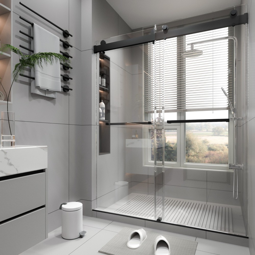 $ 184.2856-60 x 72 Inch Matte Black Semi-Frameless Double Sliding Shower Door Upgrade