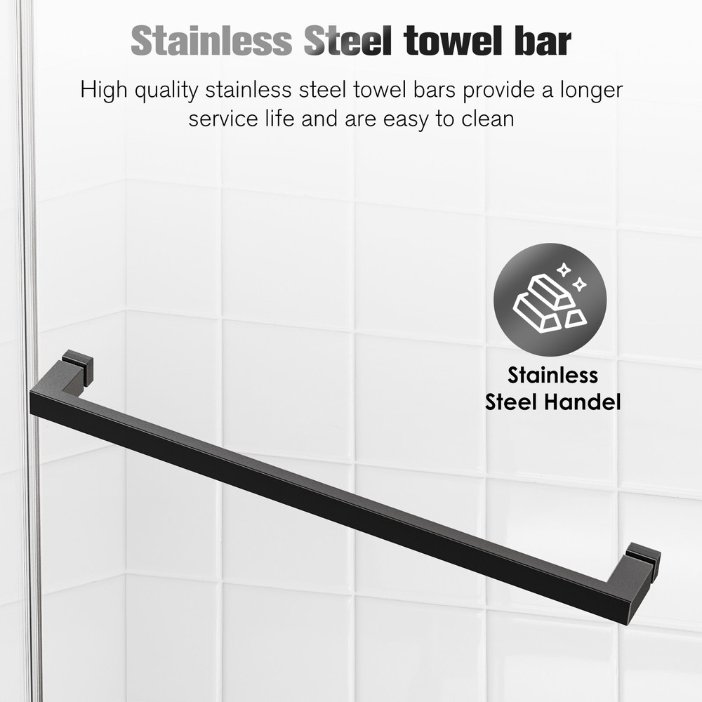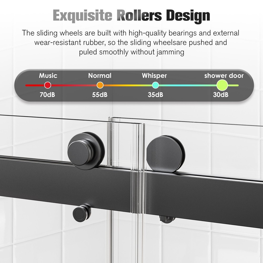 △Please be noted that this product comes in an extra large package,can only be transited and delivered by truck delivery,which requires accurate recipient phone number to well deliver. This large package takes longer to arrive. Product Information Item Code S00005 Product Type Combo Item Product Name 56-60 inches W *76 inches H Frameless Double Sliding Soft-Close Shower Door in Matte Black,3/8 inches (10mm) Thick SGCC Tempered Glass Door Place of Origin China Main Color Black Main Material Glass+Metal Product Dimensions Assembled Length (in.) 60.00 Assembled Width (in.) 76.00 Assembled Height (in.) 0.38 Weight (lbs) 187.00 Package Size Sub-item 1: P143505 Package Quantity: 1 63.58 * 9.45 * 3.54 in. 24.09lbs Sub-item 2: P143500 Package Quantity: 2 79.53 * 35.43 * 2.17 in. 93.28lbs Product Features · DOUBLE SLIIDNG WITH SOFT-CLOSE: This semi-frameless shower door can be adjusted to 56 and 60 in width by cutting, maximize your bathroom layout of our double sliding door system, designed for easy access while using minimal space for smooth, unobstructed movement. The door body is light and flexible, with a long mechanical life, and provides smooth opening and closing. · SAFE & STYLISH BATHROOM PARTITION: This product is made of high quality 3/8 inches (10mm) SGCC certified tempered glass for impact resistance and high tensile strength, increase the strength of the glass. The glass surfaces are smooth and easy to clean and maintain, keeping your bathroom clean and tidy at all times. · EXCELLENT WATERPROOF PERFORMANCE: This shower door is designed with a focus on water resistance. Its premium materials and advanced construction ensure a watertight seal, preventing any water from escaping your shower and onto your bathroom floor. · CLASSIC AND HIGH-QUALITY MATERIALS: The shower door's main structure is made of lightweight and durable aluminum alloy with stunning and sophisticated matte black finish, which offers excellent corrosion and oxidation resistance, ensuring the stability and durability of the shower door without deformation over time. · EASY INSTALLATION: The complete packaging of the shower door includes all necessary components, ensuring a smooth and unobstructed installation process. And the packaging comes with an easy to understand installation guide that covers component preparation and step-by-step installation. Description SOFT CLOSURE DESIGN Unlike traditional shower doors, this shower door utilizes a soft close system. Tested over 100,000 times, the soft close system ensures a safe and smooth glide, prevents collision with the wall and provides a quiet and comfortable showering experience. How to Measure Your Shower Space ? Measuring the size of your enclosure is the first step toward a perfectly fitted installation. The following guidelines can help you achieve a precise measurement: 1. Ensure that finished wall material is in place before measuring. 2. Take lengthwise measurements at the bottom, center, and top of your enclosure. 3. Check all surfaces and walls for level. If any surface is out of level by 3/8 inches or more, a tapered filler is recommended. 4. Measure your available height (from shower curb to ceiling) and requested height (from shower curb to the desired height of your door) ------------------------------------------------------- Do Read before You Buy : Refund& Return -Returns are accepted within 30 days.Any problems, please feel free to contact us by ebay message first, let's figure problems out together,your email will be replied within 1 business day. -We provide free Return service, but return shipping cost will be on you in below circumstances : 1. C hanged your mind or do not need /want the item or other personal reasons. 2.Items may slightly differ from photo s in terms of color and lighting differences & on different monitor’s display. 3. Manual measurement has been used, there may be some reasonable error range. 4. Choos ing the wrong size , type or color cause s unfit ting problem . Or didn't read specifications and descriptions, causes real item is different with own imagination or expectation. 5. Buyer did not know how to install or Use the item 6.Find a better price elsewhere . -Returns for free / free Replacement / free parts only happens in condition of product issue/ arriving broken /wrong item or missing parts. -For the quality issue , defective photo s must be attach ed in mails / when Return. Shippment Warning : if we shiped out the item and buyer wants to cancel the order or change address,buyer need to pay possible shipping cost . Please cancel the order or Change address before we ship out. After sals Service -we are responsible for accessories missed ( please contact us first ,and attach photo of what you've received ) -we are responsible for all losses caused by product quality issues ( Resend or Refund, please also attach defective photo s) Feedback We do appreciate hav ing such opportunity to solve the problem before leaving feedback s . Cause negative feedback solve s NO problem, but we DO ! Hope you have a good time shopping in our store! We are honored !