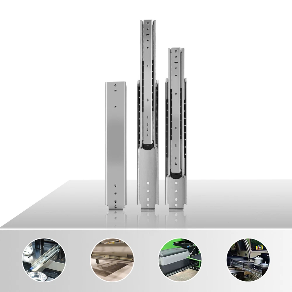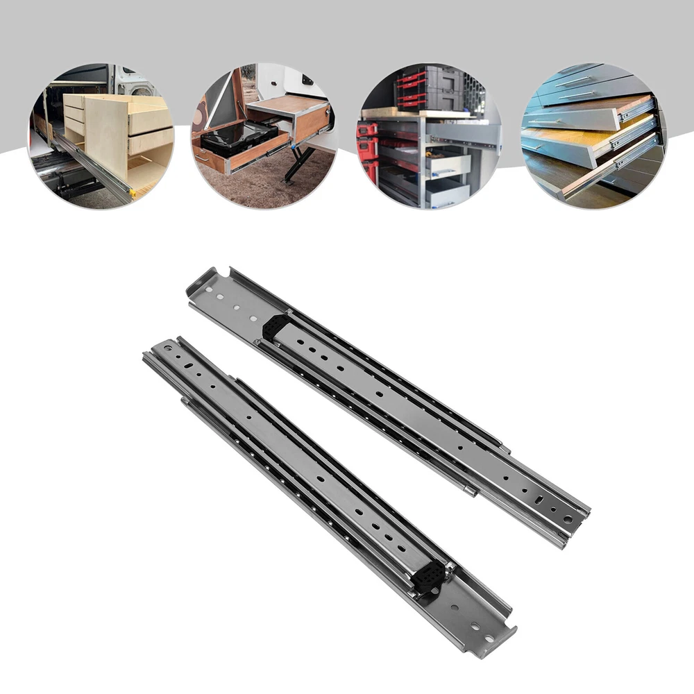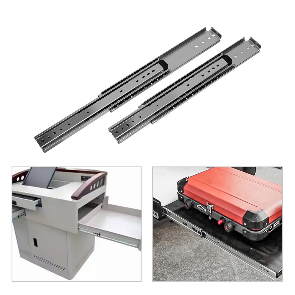 56 Inch Heavy-Duty Drawer Slides Galvanized Finish Surface Treatment Silver New Installation Steps. 1. Find two horizontal lines in the installation position on both sides of the cabinet, and fix the outer fixed slides to the horizontal lines on both sides with screws; (Note: the positioning of both sides must be parallel). 2. Completely pull the slide rail, and fix the drawer to the inner fixed rail with screws according to the horizontal line. 3. The installation is finished. Specification Style: Simple, Modern Material: Cold Rolled Steel Q235 Color: Silver Quantity: 2 Surface Treatment: Galvanized Finish Load-Bearing Capacity: 226.8kg/500lbs Slide Length: 142.24cm/56in Slide Width: 7.6cm/3in Package Size: 145*18*6cm/57.09*7.09*2.36in Gross Weight: 14kg/30.11lbs Package Included 1 Pair of Heavy-Duty Drawer Slides Notes Please note that in order to ensure the safety of users, the heavy-duty slide rails cannot be disassembled. Please note that screws are not included in the package, you need to purchase your own M4 and M6 half-round head screws. Please note that the installation gap on both sides should be more than 20mm/0.79in. Please allow the slight color difference caused by the shooting light and 1-3 cm error due to manual measurement, and make sure you do not mind before ordering. Payment Delivery details Terms of sales About us Contact us Payment We accept ebay payment 。 Fees such as import duties, taxes are not included in the item price or shipping costs. These charges are the buyer's responsibility. Delivery details Shipping: 2-9 working days to: USA Terms of sales We maintain high standards of excellence and strive for hundred percent customer satisfaction. Feedback is very important to us. We hope that you contact us immediately before you give neutral or negative feedback, so that we can address your concerns. It is impossible to address issues if we do not know about them! About us Your satis faction is our ultimate goal. We work hard to earn your trust and future business. Our certified technicians have tested each item before shipping. The unit comes with 1 year limited warranty on all manufacturing defects. a) If you receive a defective item, you may return it or ask for a discount. Please contact us within 14 days after you receive the package. b) What you returned must be intact and in its original packaging as re? u. Customer is responsible for shipping costs of the returned item. c) We will cover the cost of shipping back t with the shipping rate indicated in the registration page. We will send you a new unit or refund the full payment you paid. Thank you. Contact us Business Hour Business Hour: Monday To Friday: 8:30 AM to 5:00 PM (Beijing China time) Due to time zones, our reply to your questions may not be immediately. But within above working time, we will reply your email within 24 hours. If it's non-workdays, please kindly be patient and wait till Monday. Please contact us with ebay message. Please feel free to contact us if you have any questions. Monday To Friday: 8:30 AM to 5:00 PM (Beijing China time) Due to time zones, our reply to your questions may not be immediately. But within above working time, we will reply your email within 24 hours. If it's non-workdays, please kindly be patient and wait till Monday. Please contact us with ebay message. Please feel free to contact us if you have any questions.