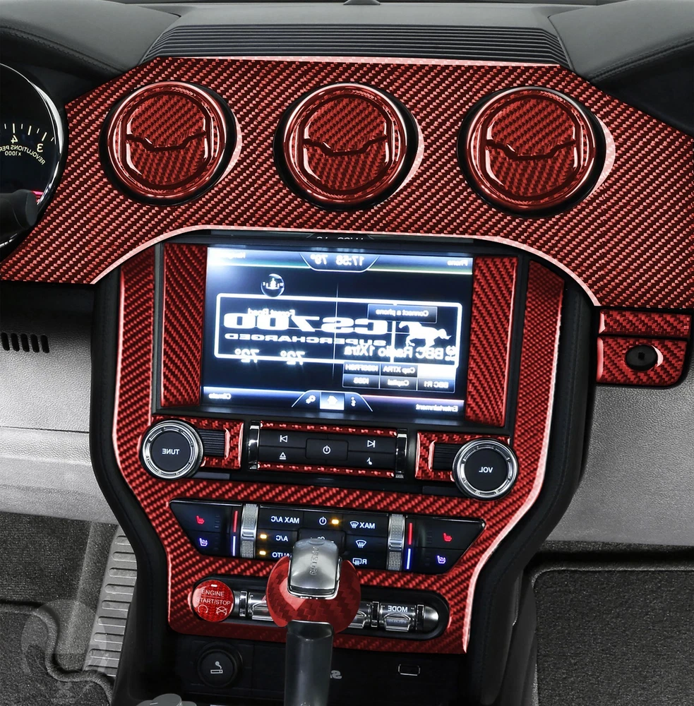 56Pcs For Ford Mustang 15-20 Red Carbon Fiber Kits Full Interior Trim Cover Set