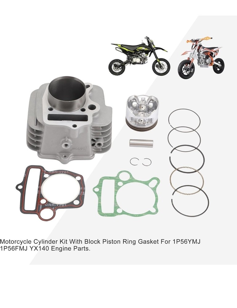 GOOFIT 56mm Down-stream Cylinder Liner Assembly Rebuild Kit with Gaskets Piston Replacement For YX 140cc 1P56YMJ 1P56FMJ 1P56FMJ-5 SSR YCF Pit Dirt Bike ATV 1.Adapted Model:Replacement For YX 140cc 1P56YMJ 1P56FMJ 1P56FMJ-5 SSR YCF Pit Dirt Bike 2.Improvements Engine:The engine cylinder kit is made of high-quality stainless steel material,which is rust proof and wear-resistant. It is manufactured strictly according to standard requirements,resulting in significant improvements to your overall engine. 3.Perfect Performance:Cylinder Kit Piston Gasket-Quality tested,has undergone testing to ensure proper fit and performance.Easy to install,long life,high cost performance,worth your expectation. 4.Premium Quality:This Brand new high quality cylinder replacement part.With High toughness,corrosion resistance,rustproof and durable.Has a good heat dissipation structure design,providing reliable performance 5.Reminder/Note:To ensure that you purchase the right product,please read the product description or image size Size: Cylinder inner diameter:56mm/2.2" 56mm Engine Cylinder Replacement for: 140cc 150cc 1P56FMJ Dirt Pit Bike ATV Quad Characteristic: The Cylinder Head With High Toughness,Corrosion Resistance,Rustproof And Durable,Support The Piston And Reduce Friction And Leakage,Providing Reliable Performance And Long Life Service Package Included: Cylinder Head x 1pc Gasket x 2pc GOOFIT Keychain x 1pc