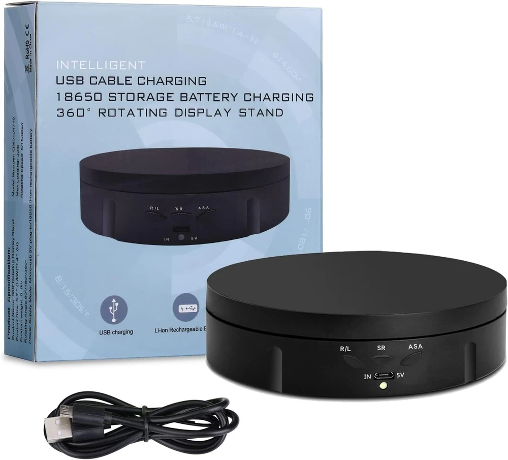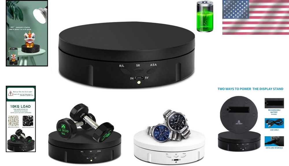 Portable 5.74-inch Electric Turntable Display Stand for Jewelry & Photography ‹ › ‹ › ‹ › ‹ › ‹ › ‹ › ‹ › ‹ › ‹ › ‹ › ‹ › Portable 5.74-inch Electric Turntable Display Stand for Jewelry & Photography Elevate Your Display Discover the elegance of dynamic presentation with our Electric Turntable Display Stand. Perfect for showcasing jewelry, watches, digital products, bags, models, and collectibles, this turntable enhances the visibility of your prized possessions. Ideal for shops, studios, schools, libraries, exhibition halls, and living rooms. Versatile Features: Wide application for various display needs - jewelry, models, digital products, and more. Control the speed and adjust the rotation direction and angle. Operates via easy-to-use buttons: click to turn on and long press to turn off. Clockwise and counter-clockwise rotation options with 360-degree movement. Two adjustable speed settings: Choose between 1-2 revolutions per minute. Angle adjustment allowing for automatic back-and-forth rotation between 90-180°. Set the rotation speed to 8, 15, or 30 seconds per revolution based on your display requirements. Lightweight at 0.3kg with a solid load-bearing capacity of up to 10KG. Convenient & Portable With dual power supply options, including a USB cable and a built-in rechargeable battery, this turntable allows you to work wirelessly anywhere. Take it outside or to remote locations for stunning photography without the hassle of cords or searching for a power outlet. Specifications: Diameter: 14.6 cm Height: 3.5 cm Max Load: 10 KG Package includes: Rotating display stand, USB cable, built-in rechargeable battery. Why Choose Our Electric Turntable Display Stand? Perfect for enhancing your product display or photography, this electric turntable combines functionality with sophisticated design. Unleash your creativity and bring your products to life with smooth, rotating presentations that captivate your audience. Ideal for live videos or product sales, the stability and responsiveness of our turntable ensures that your items are always showcased at their best. Transform your display experience; order your Portable Electric Turntable Display Stand today! Shipping Free & Fast Shipping - We offer free shipping to most of the USA with a normal delivery time of 3-7 days. However, due to the current situation, additional delivery time (up to 3 weeks) may be required for some items. Alternative Carriers - We may use alternative carriers (e.g. USPS, FedEx, UPS, etc.) to ensure your package arrives safely and on time. Due to the use of multiple carriers, we are unable to provide a tracking number automatically. Handling Time - Orders are processed and shipped within 1-2 business days of receiving cleared payment. Shipping Restrictions - Shipping to Alaska, Hawaii, Puerto Rico, Guam, and other US territories may incur shipping charges or delivery restrictions. Please contact us before ordering, or your order can be refunded/cancelled. State Restrictions - There may be restrictions based on your state of purchase. For example, certain items may not be shipped to California due to state regulations. Contact for Tracking Updates - If you require tracking updates or have any concerns about the delivery of your order, please feel free to contact us, and we will be happy to assist you. Return 30-Day Hassle-Free Returns - We want you to be completely satisfied with your purchase. If you are not, you can return the item within 30 days of receiving it for a full refund or exchange. Easy Return Process - To start a return, simply contact us and we will provide you with a prepaid return shipping label and detailed instructions. Restocking Fee - There are no restocking fees for returns. However, the buyer is responsible for return shipping costs if the return is not due to a seller's error. Refund Processing Time - Refunds will be processed within 5 business days of receiving the returned item in its condition. Payment We accept all major credit cards, PayPal, and Apple Pay for your convenience. Your payment information is secure and encrypted to ensure a safe and seamless transaction. Please complete your payment within 3 days of purchase to avoid any delays in shipping. Feedback Your feedback is extremely important to us. We strive to provide the best products and customer service possible. If you are satisfied with your purchase, please take a moment to leave us a positive review. If you have any concerns or issues with your order, please contact us before leaving negative feedback. We are committed to resolving any problems and ensuring your satisfaction. Contact Us If you have any questions or concerns, please feel free to out to our customer support team. You can contact us through the eBay messaging system. We are available Monday to Friday, 9:00 am to 5:00 pm EST, and we will do our best to respond to your inquiry within 24 hours. Buy it now and enjoy a pleasant shopping experience! Unit Quantity: 22.1 Items Included: Turntable Display Stand,Rotating display stand,USB cable,Built-in Rechargeable battery Suitable For: Jewelry,Watch,Photographing Products,Digital Products,Collectibles,Models,Digital Product,Bag Material: Ceramic Features: Rotating,Motorized,Adjustable Speed,Adjustable Direction,Adjustable Angle,Rechargeable,Wireless,Stable,Lightweight,Controltable speed,Stability,Load bearing capacity Type: Display Stand Color: Black Lining Material: Unlined Shape: Round Department: Unisex Adults Capacity: 1 Piece Item Depth: 1.38 in Unit Type: lb