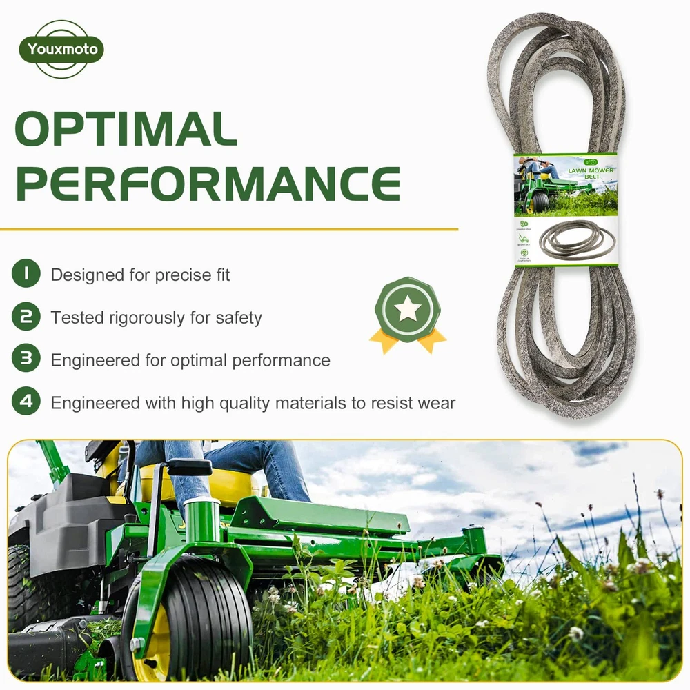 Description Note: Our Belts Have a High Resistance to Repeated Reverse Flexing, Oil, Heat and Cracking, Prevent Breakage. Belt Application: Deck (Mower Cutting Deck Belt ) Cutter Belt Type: Covered Width: 5/8" Length: 134" Replaces OEM: Cub Cadet: 754-04077, 954-04077, 954-04077A MTD: 754-04077, 954-04077, 954-04077A Toro: 112-0332 Troy-Bilt: 754-04077, 954-04077 Fits Models: Cub Cadet: i1050 tractor, 2008-2010; 17AF9BKP010, 17AF9BKP056, 17AF9BKP009, 17WF9BK010; LGT1050, 13WQ92AP010, LGTX1050, 2012; 13WS92AP010, 13WS92AP056; LT1050, 2007 and older; 13Q11CP709, 13AQ11CP712, 13AQ11CP710, 13AP11CP710, 13AP11CP709, 13AP11CP756, 13RP11CP756; SLT1550, 2007 and older; 13AQ11BP756, 13AQ11BP710, 13RQ11BP756; SLTX1050, 2010 and 2011; 13WQ92AP010 and 13AQ92AP010 with 50" deck Toro: GT2100, GT2200 and LX500, 2005 and 2006, with 50" deck Yardman: 13AA925P004 and 13AP925P004, 2010 and 2011 and 14AK811P705, 2005 Package Include: 1pc belt 【Belt Application】: Deck Width[in]: 5/8" Outside Length[in]: 134". 【Replaces Number】: fits for Cub Cadet: 754-04077, 954-04077, 954-04077A MTD: 754-04077, 954-04077, 954-04077A Toro: 112-0332 Troy-Bilt: 754-04077, 954-04077 【Replaces Number】: Woods 18879, 18879RP, Ariens 07234600. Husqvarna 574845602. Hustler 771634. Toro 112-7376 【Fit Models】Fits for Cub Cadet: i1050 tractor, 2008-2010; 17AF9BKP010, 17AF9BKP056, 17AF9BKP009, 17WF9BK010; LGT1050, 13WQ92AP010, LGTX1050, 2012; 13WS92AP010, 13WS92AP056; LT1050, 2007 and older; 13Q11CP709, 13AQ11CP712, 13AQ11CP710, 13AP11CP710, 13AP11CP709, Protective Cover is Made of a Synthetic Rubber Aramid Cord Fiber Compound Having Excellent Resistance to Heat,Oil and Abrasion.