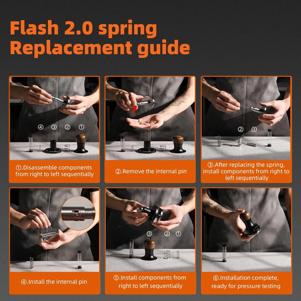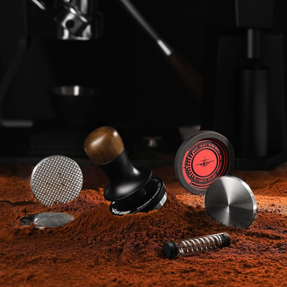 Tamper with three springs: The espresso tamper uses an original three-spring design, which not only maintains a constant pressure of 30lbs, but also provides sound feedback. PS: There is a replacement 20lbs spring in the box. Four different stainless steel base replacements: threaded, flat bottom, curved, waffle lattice. Special sound feedback: There's a solid "click" when you hit 30lbs. So you will not have the puzzle of using other calibrated coffee tamper: "Do I exert 30lbs of pressure? And when should I stop tamping powder?" Fit for 58mm portafilter: The espresso tamper base diameter is 58.35mm, which can make the tamper and portafilter basket fit better, effectively reduce the residual powder on the edge of the basket. Suitable for most 58mm coffee machine portafilters on the market, such as Breville, DeLonghi, Gaggia, La Marzocco, Saeco, Ascaso, etc. Brand service - Whether you are a coffee lover or a professional barista, is an excellent choice if you want to ensure the premium quality and good user experience from barista accessories. We always focus on creating the best coffee drinking experience for our customers. If you have any questions or suggestions please let us know, we will serve you wholeheartedly in the first time.