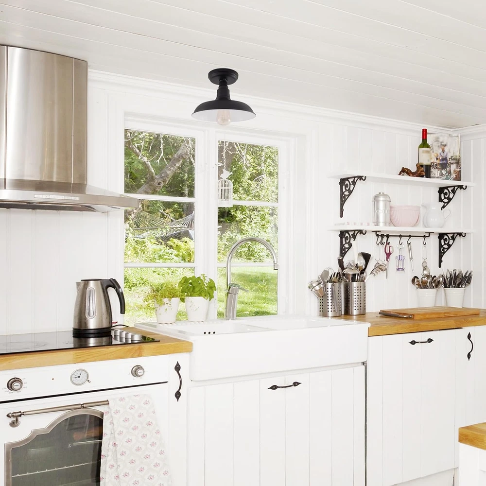 Store New Arrivals Add to Favorite View Feedback Contact 588525 Kimball Industrial Farmhouse 1-Light Indoor Dimmable Semi-Flush Ceiling Mount Light with Metal Shade for Kitchen Hallway Dining Room Bedroom, Matte Black Description Light Source Type Incandescent,Compact Fluorescent Item model number 588525 Style Kimball Number of Items 1 Power Source AC/DC Fixture Type Non Removable Number of Light Sources 1 Country of Origin China Embellishment Crystal Theme Modern Batteries Included? No Lighting Method Downlight Controller Type Push Button Item Shape Ceiling Mounts 1-Light Unit Count 1.0 Count Room Type Bedroom, Living Room Finish Matte Assembly Required No Switch Type Push Button Material Alloy Steel Installation Type Semi Flush Mount Finish Type Matte Specific Uses For Product Home Item Package Quantity 1 Indoor/Outdoor Usage Indoor Brightness 800 lumen Light Color White Water Resistance Level Not Water Resistant Batteries Required? No Warranty Type 10 Year Limited Item Weight 9.8 ounces Light fixture form Ceiling Special Features Semi-Flush Mount Special Feature Semi-Flush Mount Part Number 588525 Shade Color Matte Black Mounting Type Wall Mount Color Matte Black Wattage 60 watts Global Trade Identification Number 00044321016326 Bulb Base E26 Shape Ceiling Mounts 1-Light Plug Format A- US style Recommended Uses For Product Home lighting in various rooms including kitchens, bathrooms, bedrooms, hallways, entryways, closets, and living rooms Shade Material Alloy Steel Warranty Description 10-year limited warranty. Size 1-Light Product Dimensions 11"L x 11"W x 7.88"H Number Of Pieces 1 IDEAL FOR kitchens, bathrooms, bedrooms, hallways, entryways, closets and more, this modern ceiling light has a sleek matte black finish and a bell-shaped metal shade DIMENSIONS: 7.88 inches H x 11 inches W Uses (1) 60W standard medium base bulb or LED equivalent (Not included) DIMMABLE: Designed to be dimmable when used with a compatible dimmer switch (not included); allowing you to adjust the preferred light brightness ETL listed for use in damp locations The Design House 588525 Kimball 1-Light Semi-Flush Ceiling Light features a modern design and a matte black finish with a bell-shaped metal shade. This ceiling light is rated for 120-volts and uses (1) 60 Watt standard medium base bulb or LED equivalent (not included). This light is versatile and can be used in kitchens, bathrooms, bedrooms, hallways, entryways, and more. Measuring 7.88 inches H by 11 inches W, this fixture can be mounted on its own or paired with the Kimball Vanity Light (#588553) for a cohesive look throughout your home. Designed and manufactured by Design House, the trusted source for quality lighting, hardware, plumbing, kitchen, and bath products for every taste and budget. ABOUT US We offer the best prices around on high quality products. Our E-store includes media such as books, movies, music and games while offering electronics, toys, sporting apparel, clothing, tools, general home, garden items and more. SHIPPING We are always working hard to ensure your package arrives as soon as possible. Please understand that some factors like weather, high postal traffic, and the performance of shipping companies are outside of our control. We offer free shipping to the lower 48 states and ship within 2 business days of payment, usually sooner. We do not accept P.O. Boxes. Please provide a physical address. For shipping outside of the continental USA, we only use eBay's Global Shipping Program.The item is shipped to KY and then sent to the rest of the world. International customers are responsible for all duties and taxes. Continue to check out in order to calculate costs for shipping the item to your country. Messages regarding eBay's Global Shipping Program MUST be directed at eBay EXCLUSIVELY. RETURNS We offer a 30-Day Return Policy on items which you are not completely satisfied with. You have the option for a full-refund or an exchange of the item. No returns are available on items shipped outside of the USA. PAYMENT We accept PayPal. CONTACT US This page content is yet to come Please ad us to your favorite seller and visit again later Thank You CUSTOMER SATISFACTION We try our very best to make sure every customer is completely satisfied. If there's a problem, message us! We're happy to help. WE ACCEPT Copyright © 2021 AutoDS. | All Rights Reserved