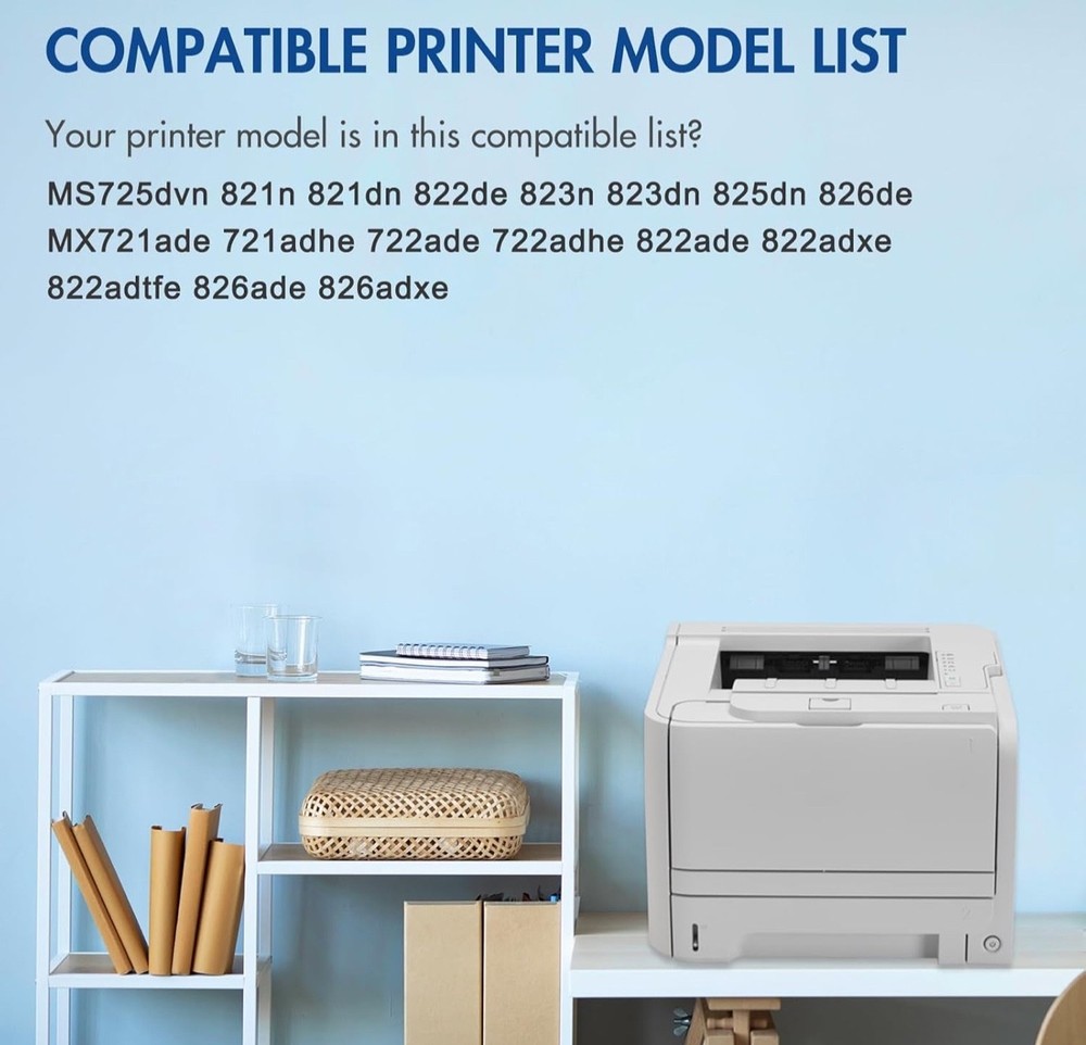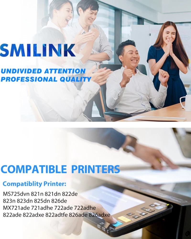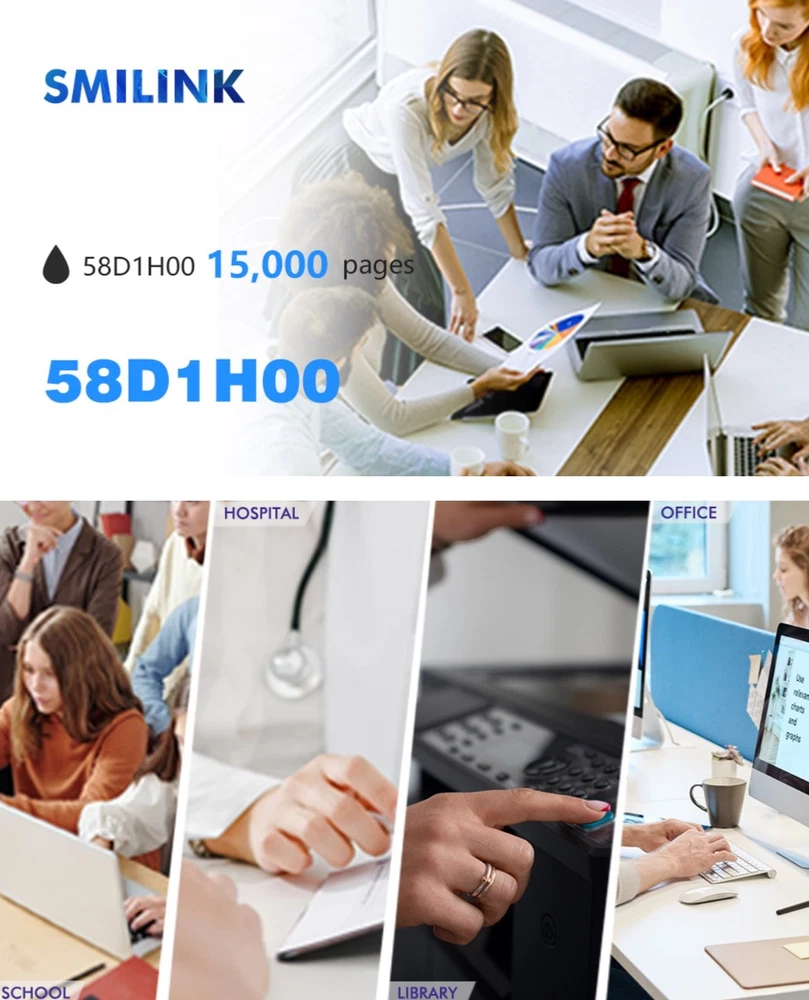 #2741 58D1H00 Black Toner Cartridge 58D1000 MS821dn Remanufactured Compatible for Lexmark 58D1H00 MS821n Black Toner for MS725 MS821 MS822 MS823 MS825 MX721 MX722 MX822 MX826 Printer (15,000 Pages, 2-Pack) Brand SMILINK Color 58D1H00 Black Toner Cartridge*2 Compatible Devices MS725dvn, MS821n, MS821dn, MS822de, MS823n, MS823dn, MS825dn, MS826de, MX721ade, MX721adhe, MX722ade, MX722adhe, MX822ade, MX822adxe, MX822adtfe, MX826ade, MX826adxe Manufacturer SMILINK-for-Lex'mark 58D1H00 black toner cartridge Included: 2 Pack 58D1H00 58D1000 toner cartridge Page Yield: Up to 15,000 pages per 58D1H00 Black Toner Cartridge (Letter/A4, at 5% Coverage) Compatible for Lexmark Printer: MS725 MS821 MS822 MS823 MS825 MX721 MX722 MX822 MX826 Series Printer Package Contents: 2 Pack 58D1H00 Black Toner Cartridge SMILINK 58D1H00 black toner cartridge continues to offer you a printing experience of high quality and economic affordability Compatible for Lexmark Printer: MS725 MS821 MS822 MS823 MS825 MX721 MX722 MX822 MX826 Series Printer