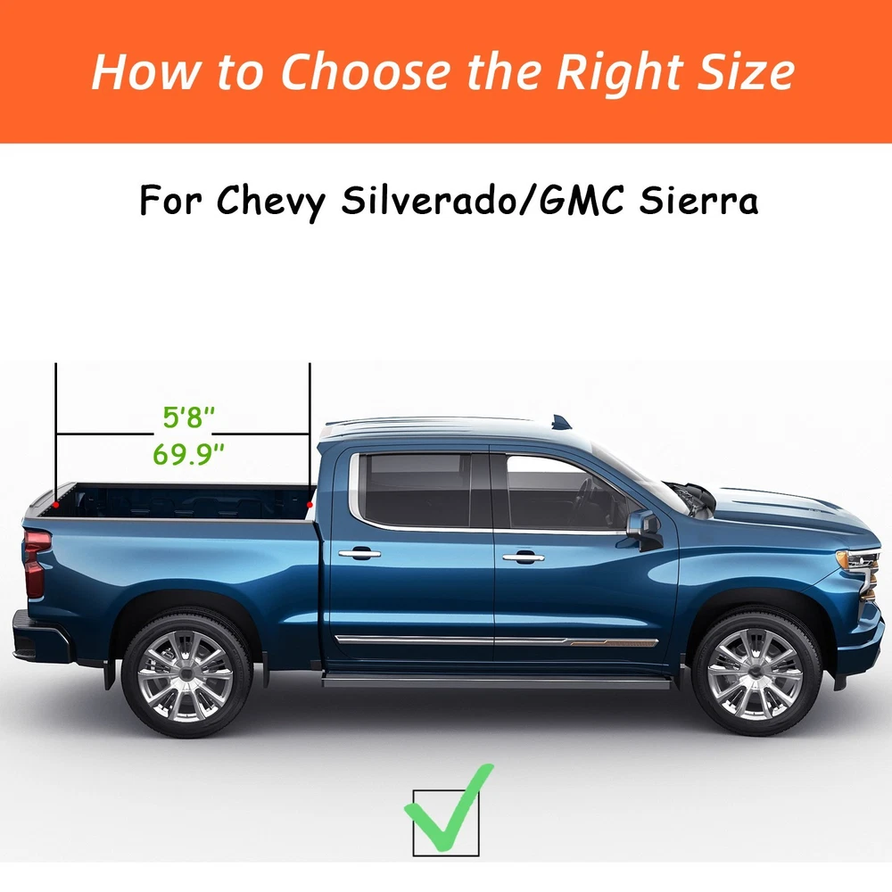 FRIENDLY REMINDER (Many returns are caused by ordering the wrong size) | The Silverado 1500/GMC sierra 1500 comes in tow different bed lengths. This retractable truck bed cover is only compatible with the 5.8 ft short bed—it will not fit the 6.5 ft or 8.0 ft versions. Since return shipping for large items can be costly, please double-check your bed length before purchasing to avoid unnecessary fees. CUSTOM MODEL | The 5 feet 10 inches Short truck bed cover is precisely engineered to be compatible with the 2010-2026 Silverado 1500(incl. GMC Sierra 1500), without causing hindrance to its automatic tailgate feature. EASY INSTALLATION | After assembling the rails, place them on the truck bed, adjust the position, and then secure the brackets. The entire installation process takes approximately 30-60 minutes. Please refer to the installation video and manual before installation to help you complete the process more easily. INSTALLATION VIDEO: It is highly recommended that you watch the full installation video provided in the product link or search for “SADELOOS installation” on YouTube. Combined with the installation manual, this will be extremely helpful for your installation process. EASY OPERATION | Once unlocked, the cover automatically retracts into the housing, eliminating the need to walk to the truck and manually push the handle. The pull strap allows for easy closing and locking of the cover. Once pulled back, the cover automatically locks and can only be unlocked by opening the tailgate, ensuring the security of your personal belongings while being very convenient to use. THREE-POSITION HOVER | The cover can be controlled by the pull-cord to hover at three different positions, allowing for easy loading of oversized items without obstruction. ULTIMATE PROTECTION | This truck bed cover features a wide rails design and sturdy aluminum slats coated with a matte double-layer black textured powder coat. It comes equipped with an integrated water management system to shield against rain, snow, and dirt. Proper installation ensures virtually leak-proof performance. EXPANDABILITY | The Bestwyll retractable truck bed cover is equipped with the Trax Rail System, featuring a single-rail dual T-slot design that enhances compatibility and stability. (T-slot accessories sold separately.) WORRY-FREE SERVICE | With over 11 years of experience in designing and manufacturing truck accessories, SADELOOS is a trusted partner for many internationally recognized truck brands. We always put our customers first, delivering high-quality service and support to ensure your complete satisfaction. If you ever have any questions or concerns, feel free to reach out to us anytime. 【 Multi-function】This cargo cover has side rails with T-slots on both sides. If you like to install shelves or other gantries, you can also add them to the cargo cover, which is very compatible. At the same time, there is an LED light under the password lock, which is perfect for nighttime camping. 【Convenience】: Never worry about forgetting to bring your keys or losing them. You can also let your friends open the cover remotely, just tell him the password. You can also change the password at any time. If you forget the password, please contact us in time and we will help you find it back. 【Retraction System】: The telescopic function of this cargo box cover allows you to easily and conveniently enter the truck compartment. Just pull or push to retract or unfold the cover and load and unload cargo easily. This versatility makes it suitable for various types of transportation needs. 【Weatherproof】: The surface of the cargo box cover adopts aluminum structure, and there are waterproof strips between the aluminum strips, which has excellent resistance to weather factors such as rain, snow, UV rays and dust. The cover forms a sealed barrier and is equipped with a drain pipe system to effectively drain water, keep the cargo dry and protected, and ensure that it can be kept in the best condition even in adverse weather conditions. 【Durable Aluminum Structure】: This cargo box cover is made of high-quality aluminum to withstand the rigors of daily use. The sturdy construction ensures long-lasting durability, making it a reliable choice for truck owners who need a strong and durable cargo cover. 【Safe and Reliable】: The aluminum telescopic cargo cover comes with a built-in locking device to provide enhanced security for your truck bed and cargo. You can rest assured that your belongings are safely stored and protected from theft. 【Stylish Streamlined Design】: The aluminum telescopic cargo cover adopts a stylish and streamlined design, which not only adds a sense of style to your truck, but also reduces wind resistance, thereby improving fuel efficiency. Its low-profile appearance enhances the overall beauty of the vehicle. Material Aluminum Alloy Operation Retractable, Manual password lock Cover Type Hard Type Waterproof Function Locking, No Drill Installation, Waterproof Product Name Retractbale tonneau cover Car Model Pickup Truck Types Product name Retractbale tonneau cover Type Accessories Tonneau Cover Color BALCK Installation No-drilling Installation Style Retractable Tonneau Roll Cover Function Waterproof,dust-proof Car Fitment truck accessories Weight 37KG Features Easy Product name truck accessories Material Aluminum alloy Color Black Brand name Willmoso Type Manual & Automatic Delivery time 2-3 days Package Carton box Quality 100% high quality Payment TT,Western Union,Paypal