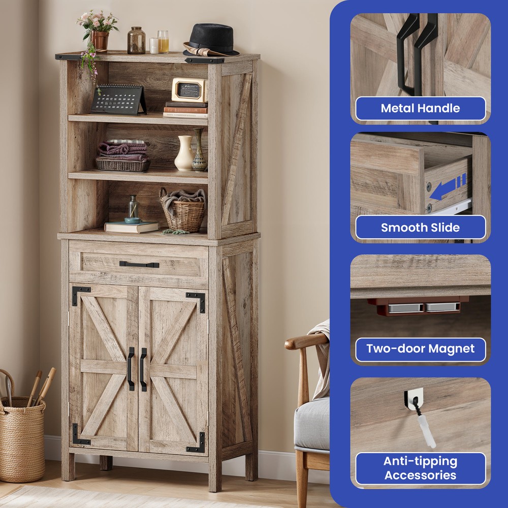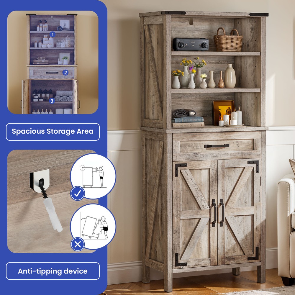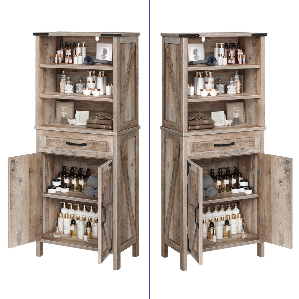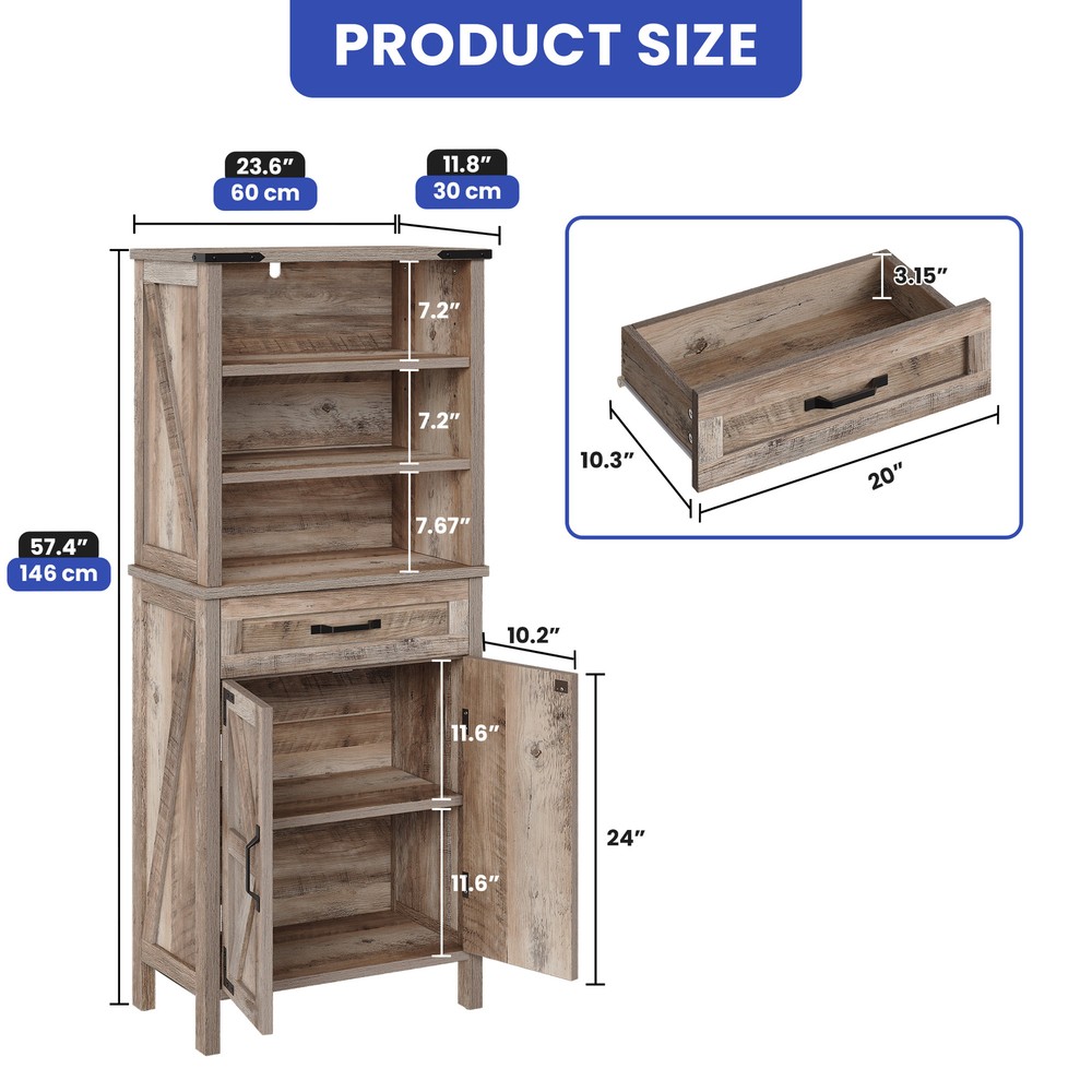 58" Tall Bathroom Cabinet Kitchen Storage Organizer Adjustable Shelves with Drawer Product Description NOTE: Professional Installation would be Highly Recommended. Description: 1. Color: Washed Gray 2. Material: MDF, Particle Board, Metal Handle 3. Room Type: Living Room, Bathroom, Dining Room, Bedroom, Laundry Room 4. Special Design: Drawers, Adjustable Shelves, Anti-Tipping Device, Two-Door Magnet, Smooth Slide Features: 1. Durable Material: Our durable storage cabinet is built to last. Made from premium engineered wood, it is resistant to both scratches and water. This robust design makes it perfect for busy households. It offers long-lasting performance, even in high-traffic areas. 2. Spacious Storage Space: This spacious cabinet includes a large adjustable shelf and a roomy drawer. It provides plenty of storage for your belongings. With its generous capacity, you can easily organize your items. The design ensures ample space for a tidy and efficient storage solution. 3. Versatile Applicatipn: This adaptable cabinet with doors is perfect for both small and large homes. It fits seamlessly in living rooms, bathrooms, and many other spaces. Its design makes it a practical storage solution for any room. You’ll appreciate how it enhances the functionality of your home. 4. Safety Cabinet: The iron corners enhance both the durability and aesthetic of the piece. Furthermore, the anti-tip kit provides added security for your peace of mind. Together, these features make it a safe and attractive addition to any room. The combination of style and safety ensures reliability and elegance in your space. Dimensions: 1. Product Dimensions: 23.6"L X 11.8"W X 57.8"H 2. Drawer Dimensions: 20"L X 10.3"W X 3.15"H 3. Item Weight: 59.08 lbs Package Included: 1. 1 X Cabinet 2. 1 X Assembly Instruction Shipping 1. Normally the item will be dipatched within 1 business day if payment is cleared before 12pm PST. 2. Please verify the correct shipping address in your PayPal account before making the payment. We only dispatch the item to the address that is sent to us at the time of checkout. 3. We don't ship to Hawaii, Alaska, Puerto Rico, APO/FPO/PO Boxes. 4. We don't provide local pick-up service. 5. Normally we will use USPS, UPS, FedEx & LTL to dispatch items. Payment 1. We accept PayPal and credit card. 2. We will ship to the confirmed Paypal shipping address that is provided with the payment only. Return 1. 30 days Money Back Guarantee. 2. Please contact our customer service to receive a RMA form first if want to return the item. 3. All returned items MUST in new condition with the original package. Contact If has any problem, please contact us by sending an ebay message. Our customer service will resolve the problem as soon as possible. On Aug 7, 2024 at 23:46:52 PDT, seller added the following information: On Sep 30, 2024 at 00:00:50 PDT, seller added the following information: On Oct 14, 2024 at 06:34:04 PDT, seller added the following information: On Mar 11, 2025 at 00:37:18 PDT, seller added the following information: