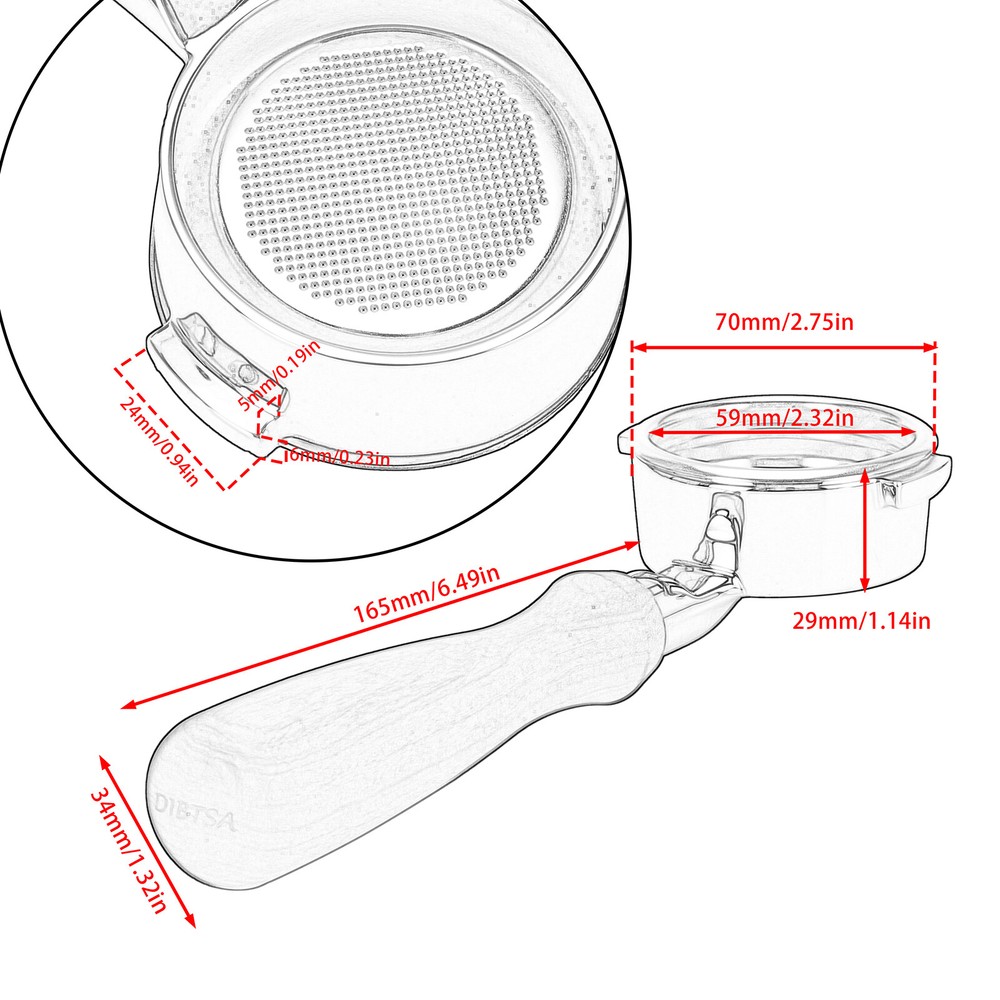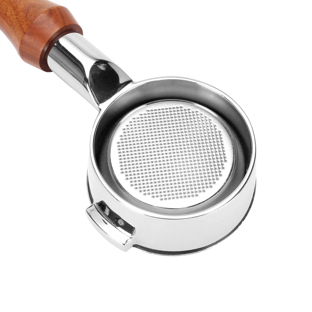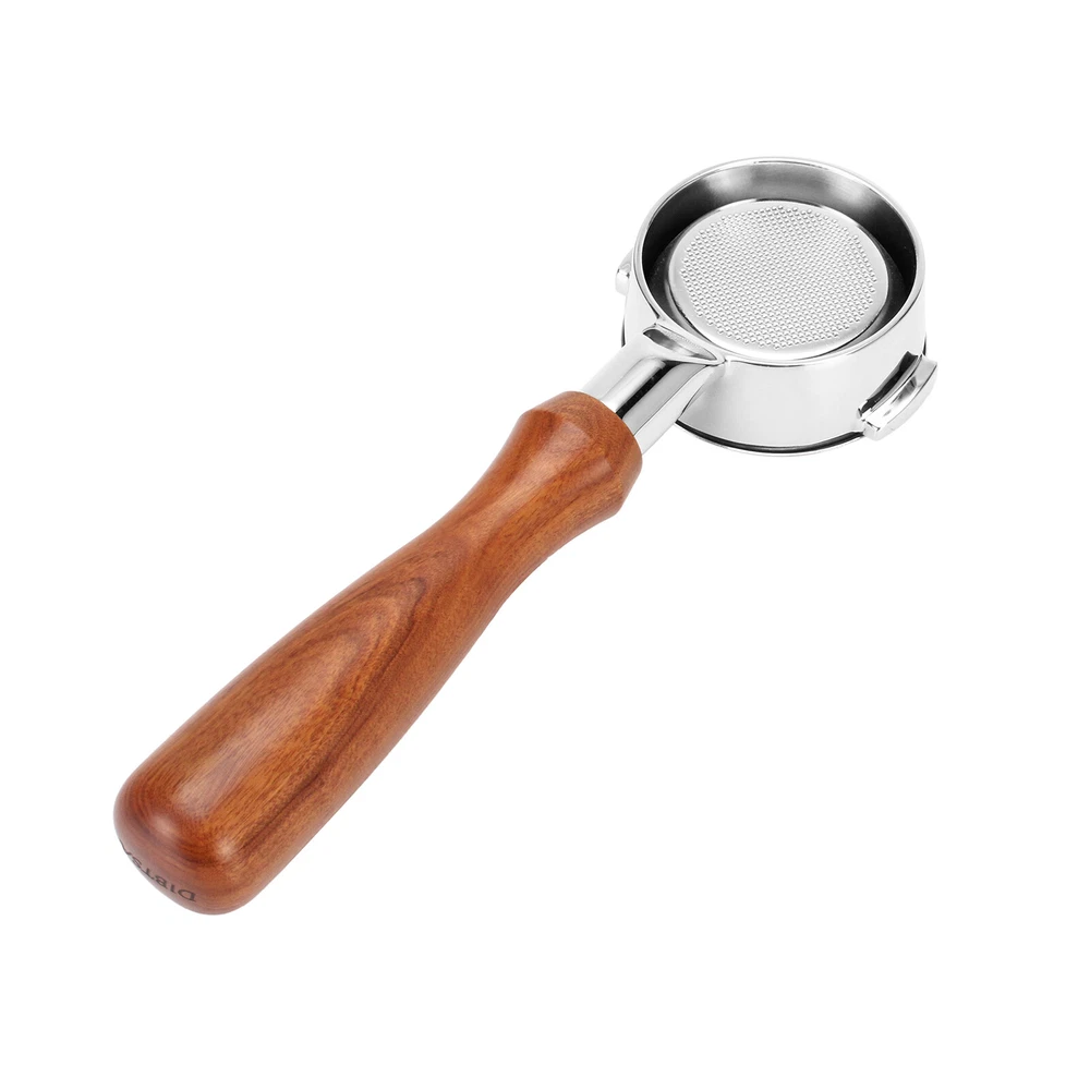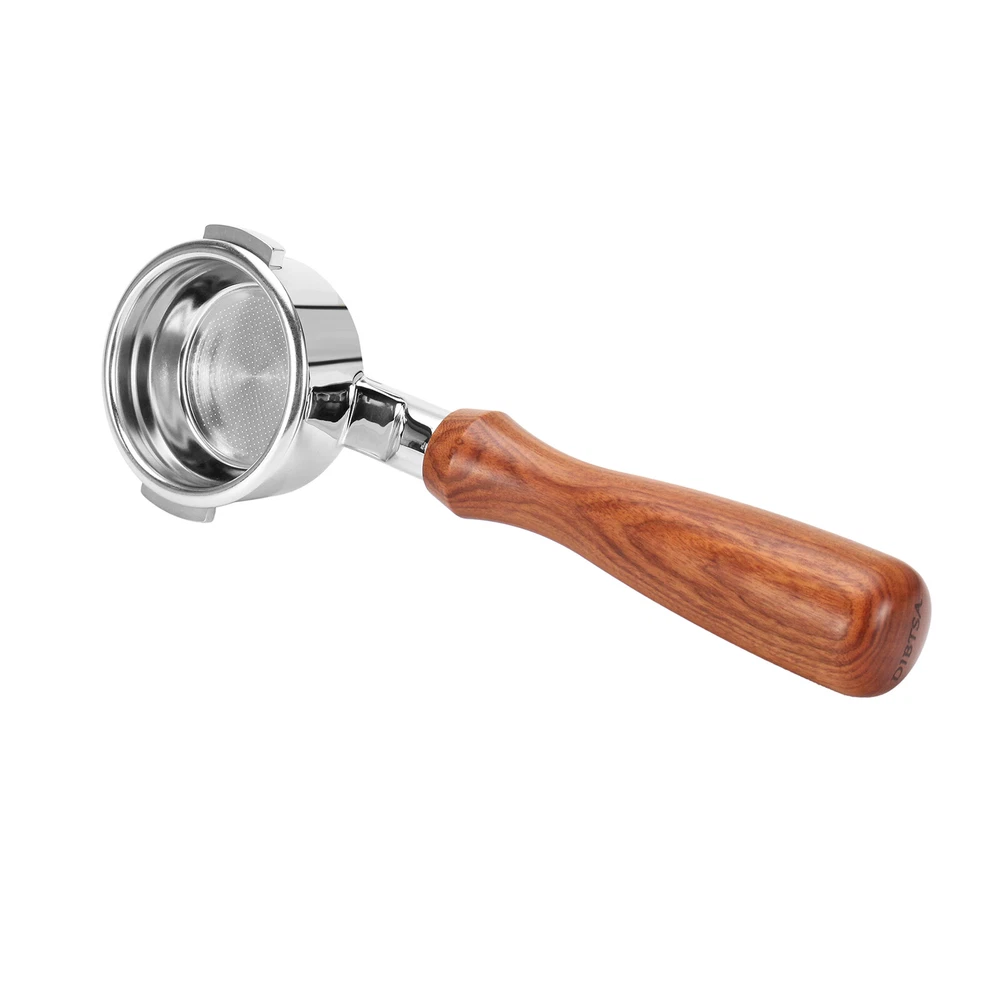 58mm Bottomless Portafilter For Breville BES900XL BES920XL BES920BSXL BES920CB XL Description: --FITS MODEL: Compatible with Breville Dual Boiler Espresso Machine BES920CBXL BES920BSXL BES920XL BES900XL , please confirm your espresso machine model before order. --BENEFITS OF USING A BOTTOMLESS PORTAFILTER: This naked bottomless portafilter gives an unobstructed view of your extraction , helping you to see if any mistakes right away , allow you to monitor your shots. It is a critical tool for a barista, and especially in dealing in a new bean or learning how to brew espresso. --CHECK WHETHER THE COFFEE GRINDER IS EVENLY DISTRIBUTED OR PRESS TAMPED: Without a spout obstructing your view, you can see the coffee pass through the puck and detect any non-uniformities that might be causing an uneven extraction. --CLEAR VIEW OF THE ESPRESSO'COLOR AND TEXTURE: The bottomless portafilter is that the clear view lets you examine your espresso’s color and texture as it brews. --EASY TO CLEAN: Cleaning a bottomless portafilter is also significantly easier than one with a regular bottom. Bottomless portafilters have fewer places for grounds to get stuck and it’s much easier to rinse them knowing you didn't leave any stragglers behind Specifiction: Type: 58mm Portafilter Material: Stainless Steel+ Solid Wood Handle Color: Silver Size: 58mm Package: 1 Pc 58mm Portafilter