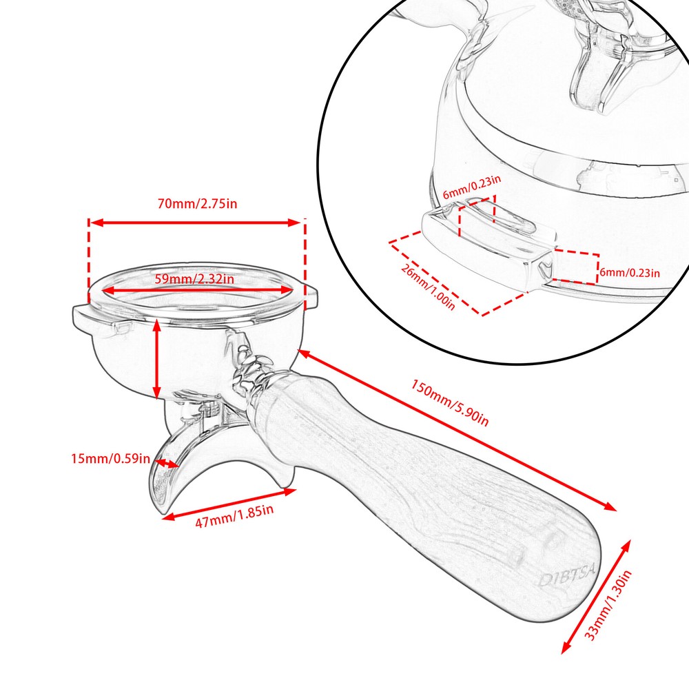 Descriptions: This coffee portafilter is design with double spouts, which allows you to make two espresso cups at the same time without coffee residue. Perfect for use at cafe or home which with many members, can improve the efficiency of coffee making Made of food-grade 304 stainless steel, its exceptional resistance to oxidation, corrosion, and rust, which ensures that your coffee stays free from any unwanted impurities. The handle is made of solid wood which provide a natural grip, ergonomic design also ensure that it remains stable extracting process. The filter basket and wood handle of this dibtsa portafilter can be disassemble, convenience to clean. Specifications: Condition: Brand New Type: Portafilter Material: Wood + Stainless Steel Size: 58mm Color: Silver Fitment: Compatible with E61 grouphead, Astoria, Rocket, Faema, ECM Rancilio, Sanremo, Wega, Casadio, Keesvanderwesten, Ascaso, Synesso, Slayer, Conti, Fracino, Magister, N.simonelli, Promac, Victoria Arduino, Bezzera, Bfc, Bianchi, Brasilia, Fiorenzato, Grimac, Iberital, La Nuovaera, La Scala, L'orchestrale, Qualityespresso, Sab Italia, Vfa, Vibiemme, Elektra, La Pavoni, Expobar ( NOT fit 58mm Breville coffee machine,grindmaster cs2-220 and gaggia). Package Includes: 1 x 58mm Portafilter These Home & Kitchen products are also on sale for a 10% reduction!!! USD 19.88 51mm Coffee tampe - walnut wood handle - Eco-friendly 304 stainless steel Base BUY NOW USD 19.88 53mm Coffee tampe - Eco-friendly 304 stainless steel Base - walnut wood handle BUY NOW USD 19.88 1x 58mm Coffee tampe - Eco-friendly 304 stainless steel Base, Walnut wood handle BUY NOW USD 26.09 1 Pcs of Large capacity Stainless Steel Coffee Ground Knock Box and Rubber stem BUY NOW USD 33.65 10.8*10.8*11.3cm Large Capacity Coffee Grounds Knock Box Anti-rust Easy to clean BUY NOW USD 44.72 13.8*13.8*13.5CM Large Capacity Coffee Grounds Knock Box Anti-rust Easy to clean BUY NOW USD 33.65 Large Capacity 10.8*10.8*11.3cm Easy to clean Coffee Grounds Knock Box Anti-rust BUY NOW USD 44.72 13.8*13.8*13.5CM Large Capacity Coffee Grounds Knock Box Anti-rust Easy to clean BUY NOW